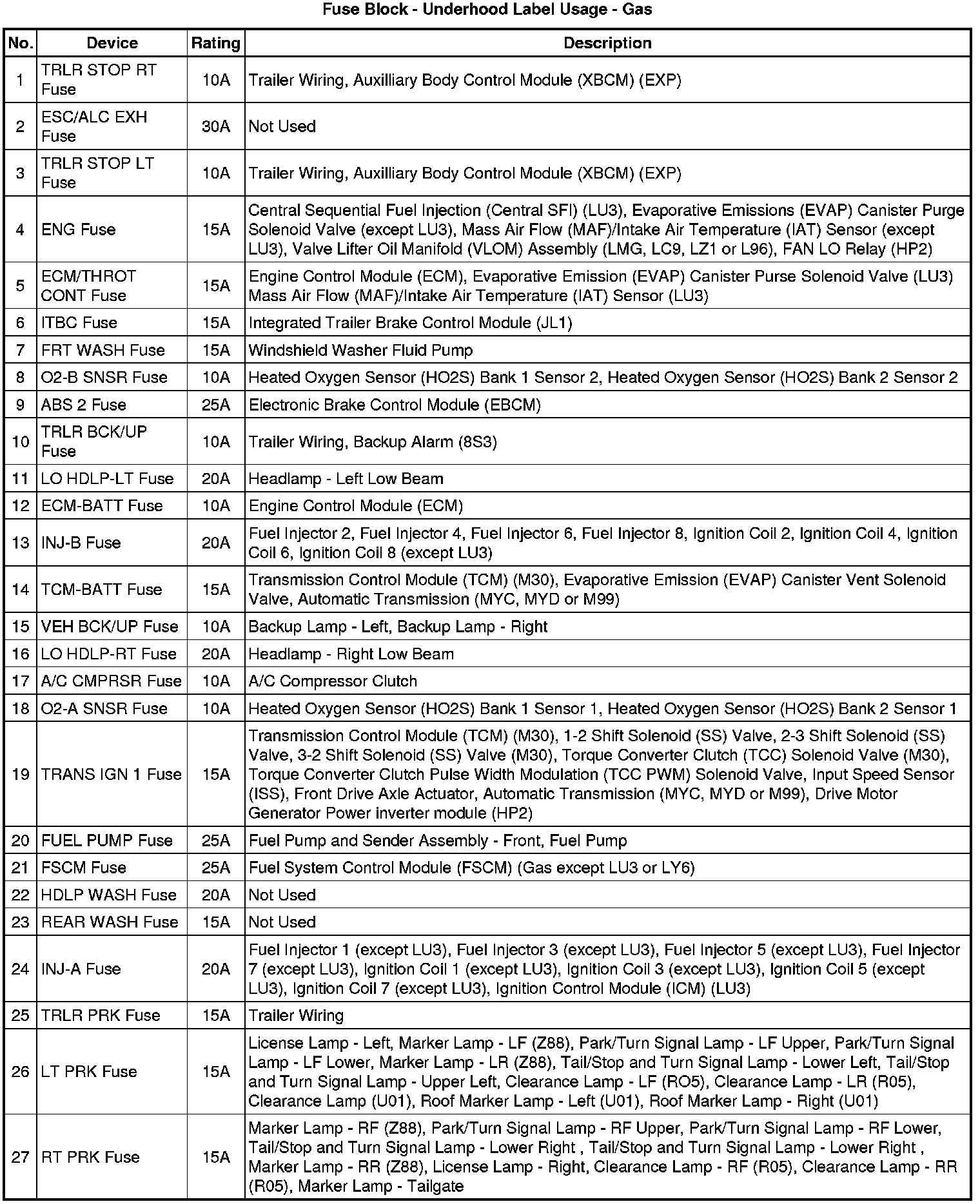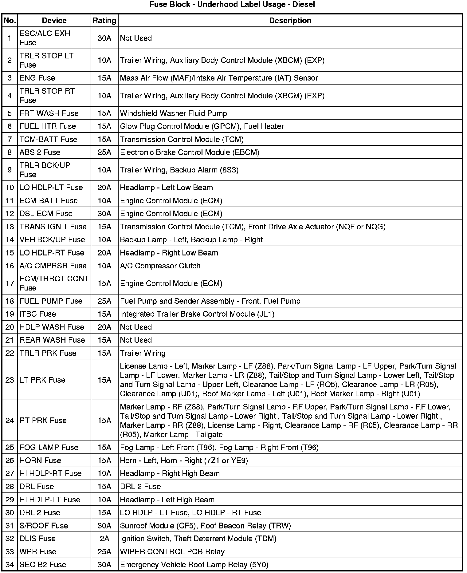 Fuse Block - Underhood Label
