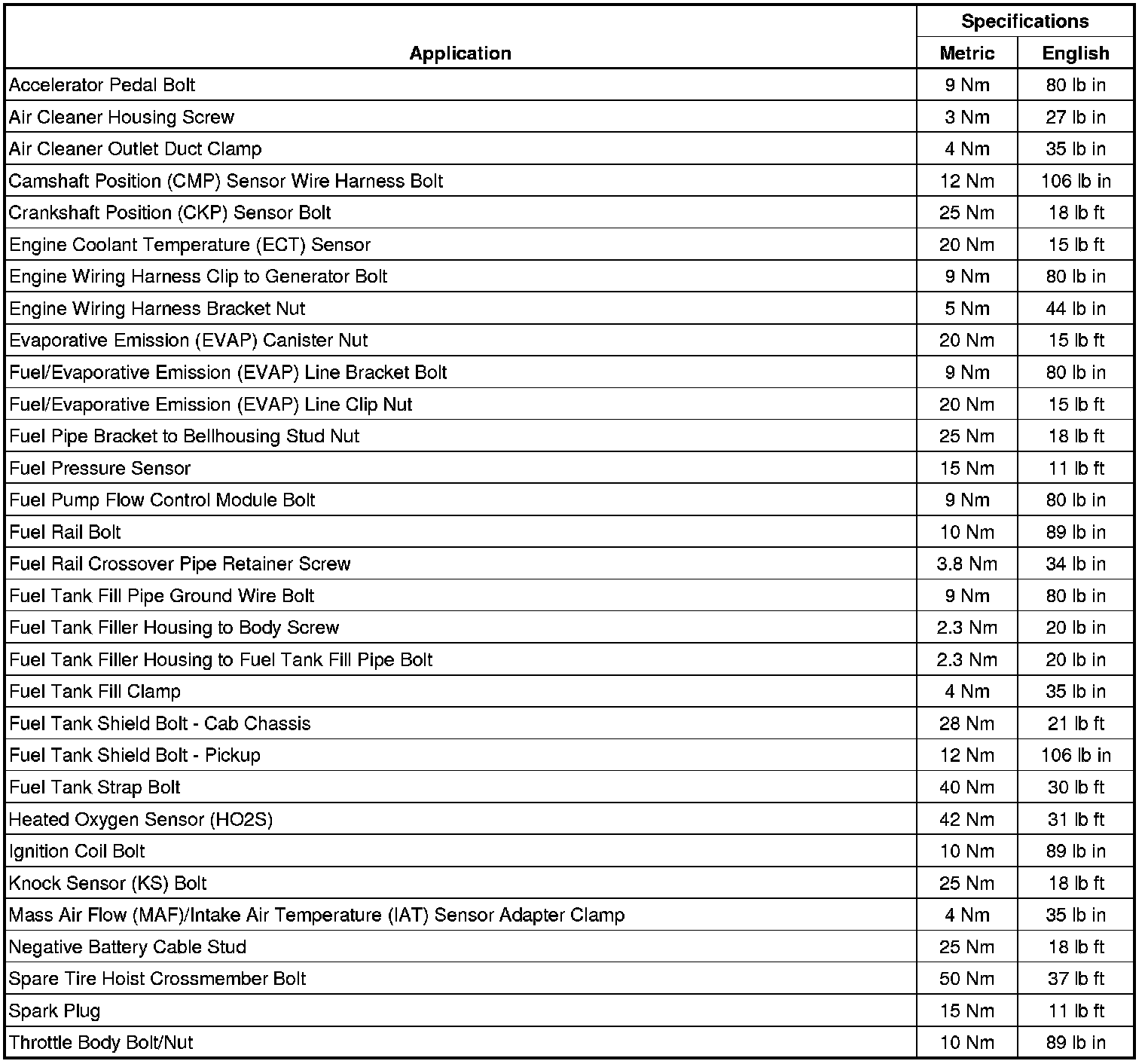Fastener Tightening Specifications