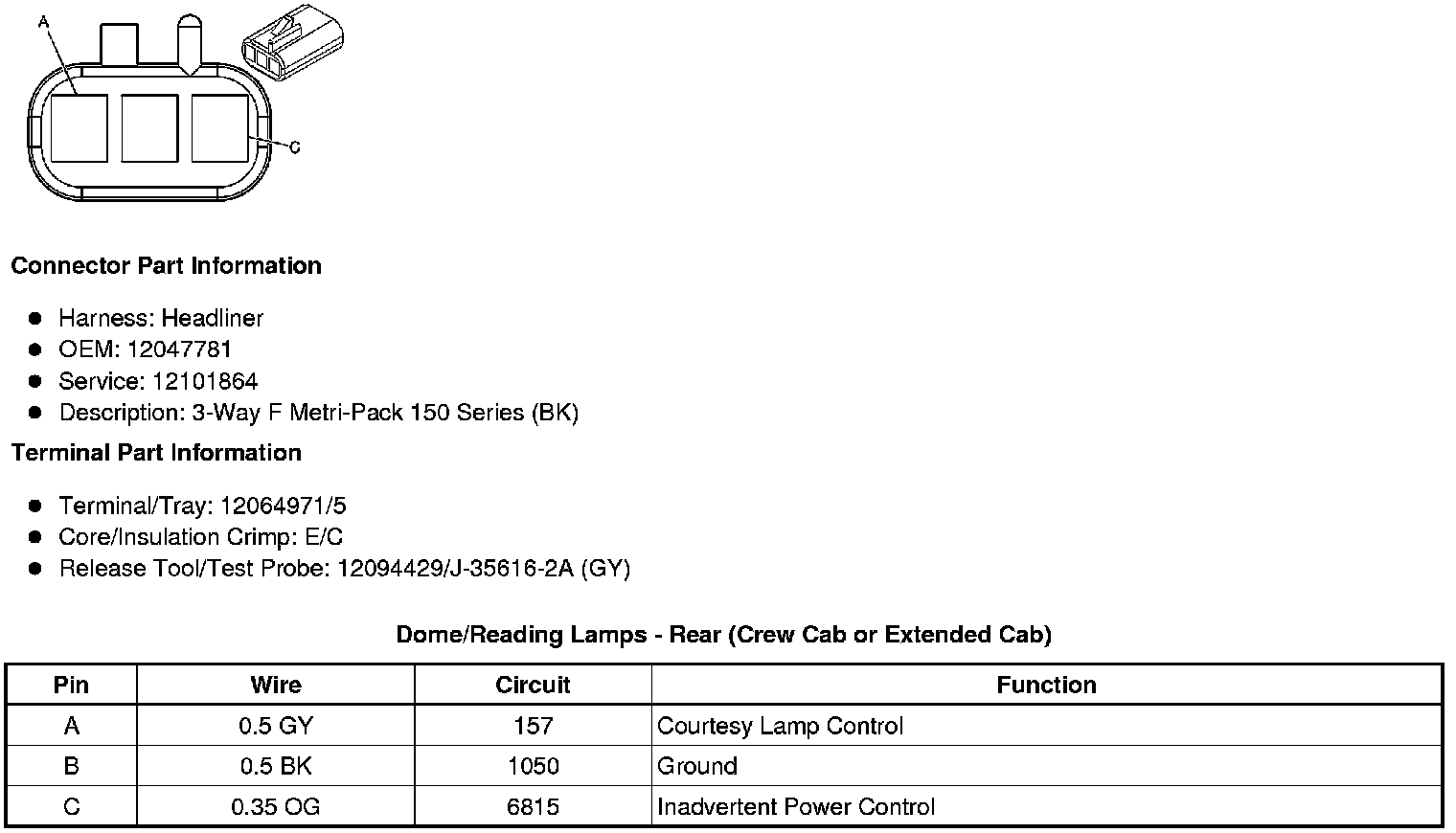 Dome/Reading Lamps - Rear (Crew Cab or Extended Cab)