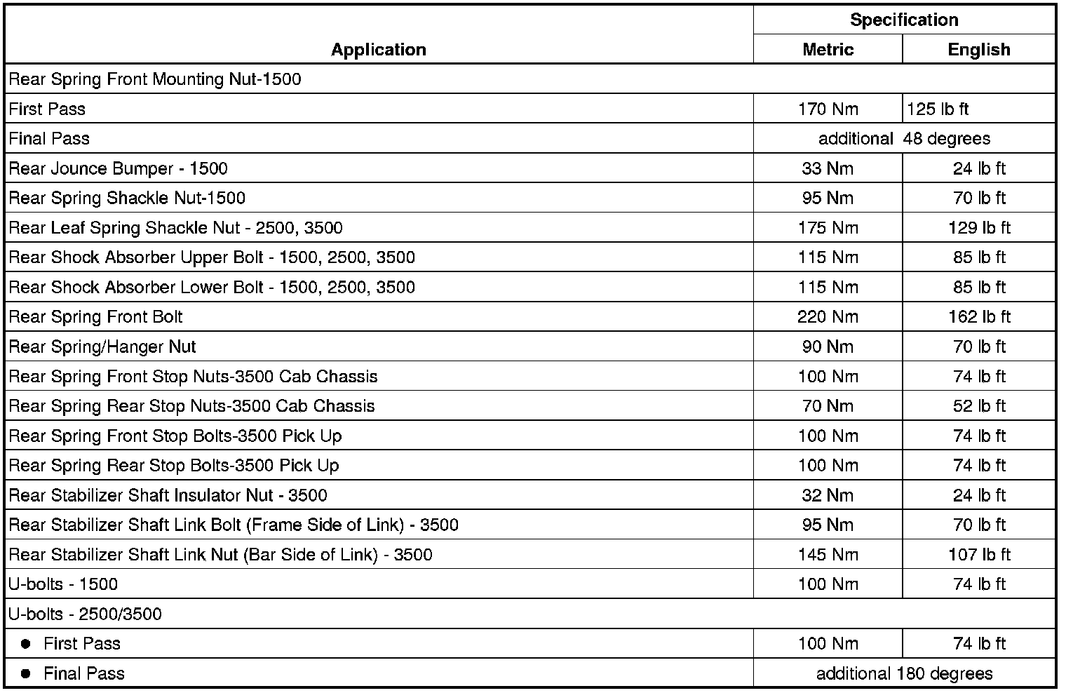 Fastener Tightening Specifications