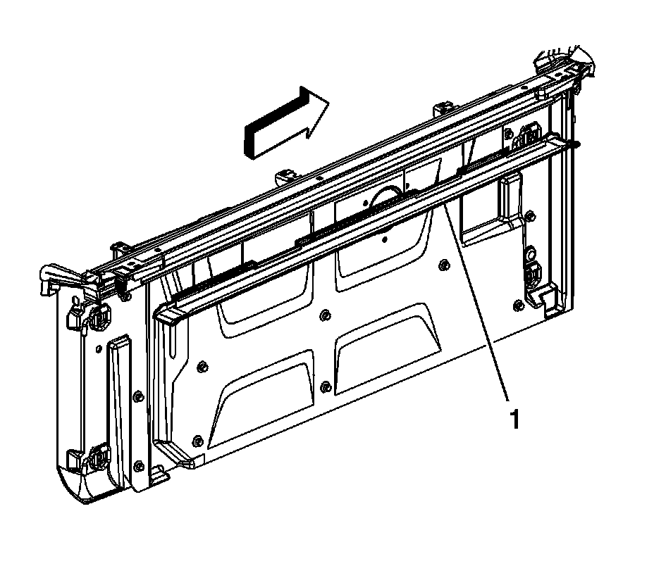 5. Pull downward to disengage the drain gutter (1) from the cargo stowage box.