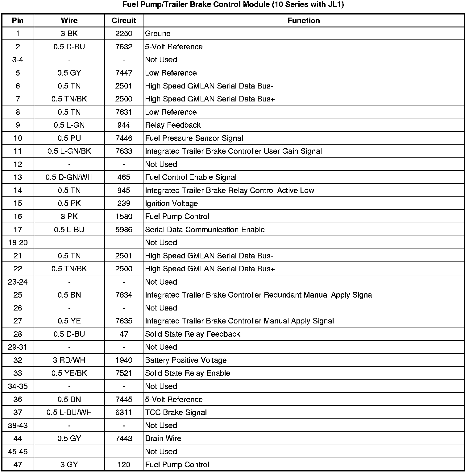 Fuel Pump/Trailer Brake Control Module (10 Series with JL1)