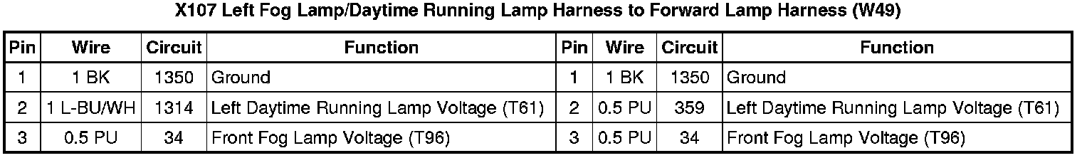 X107 Left Fog Lamp/Daytime Running Lamp Harness to Forward Lamp Harness (W49)