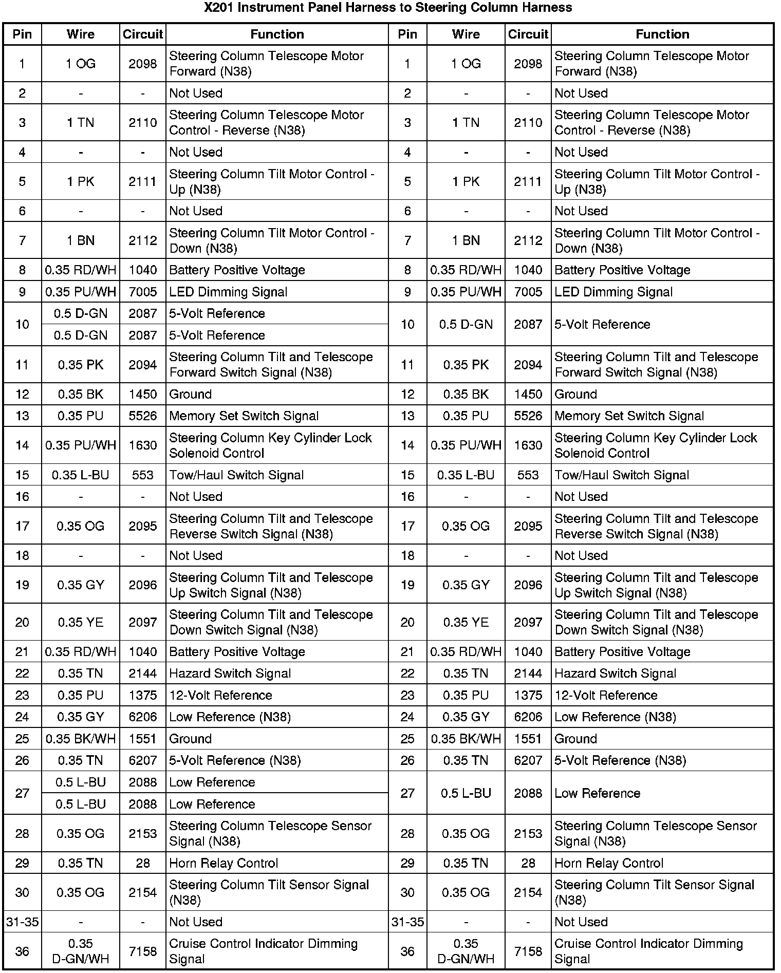 X201 Instrument Panel Harness to Steering Column Harness