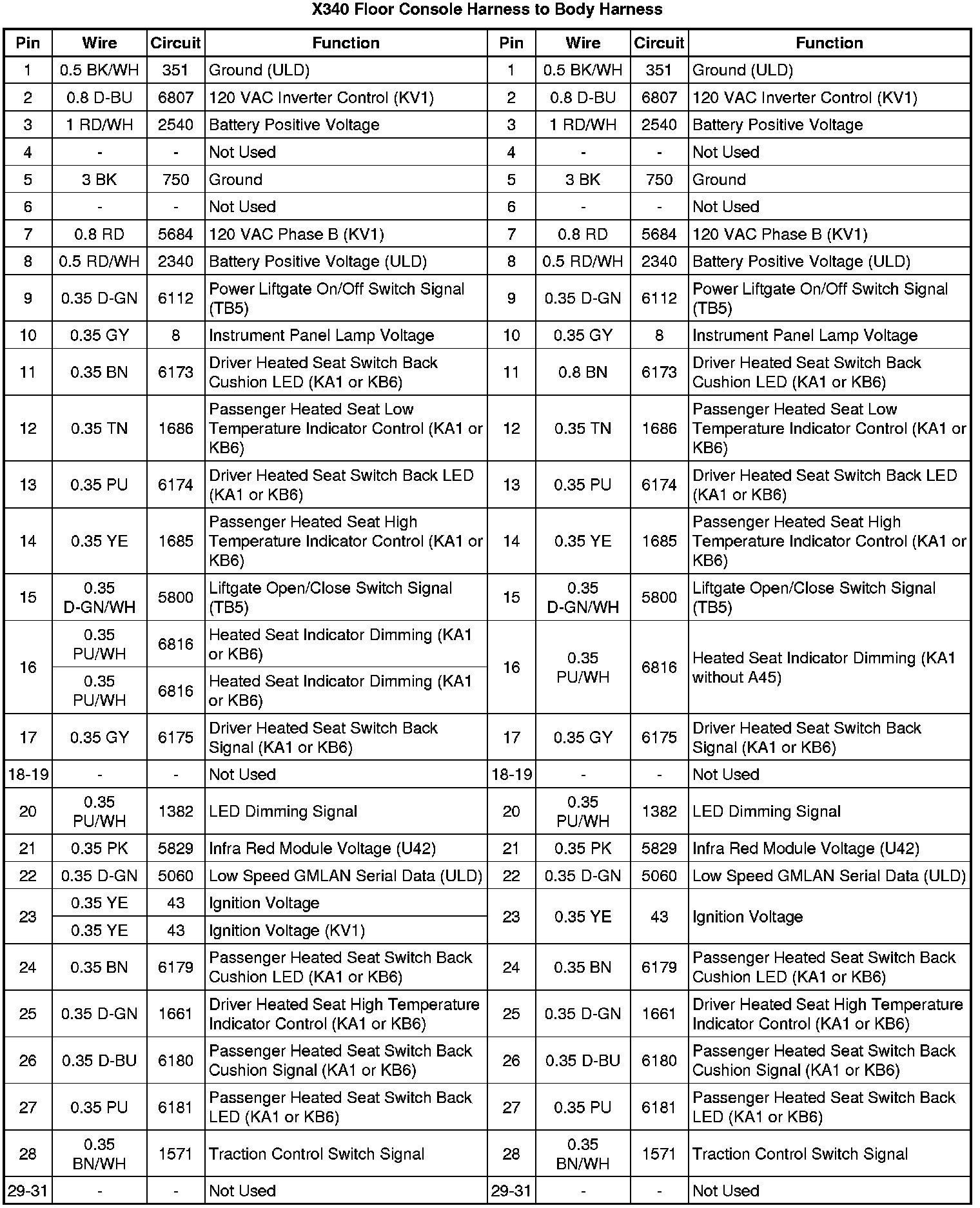 X340 Floor Console Harness to Body Harness