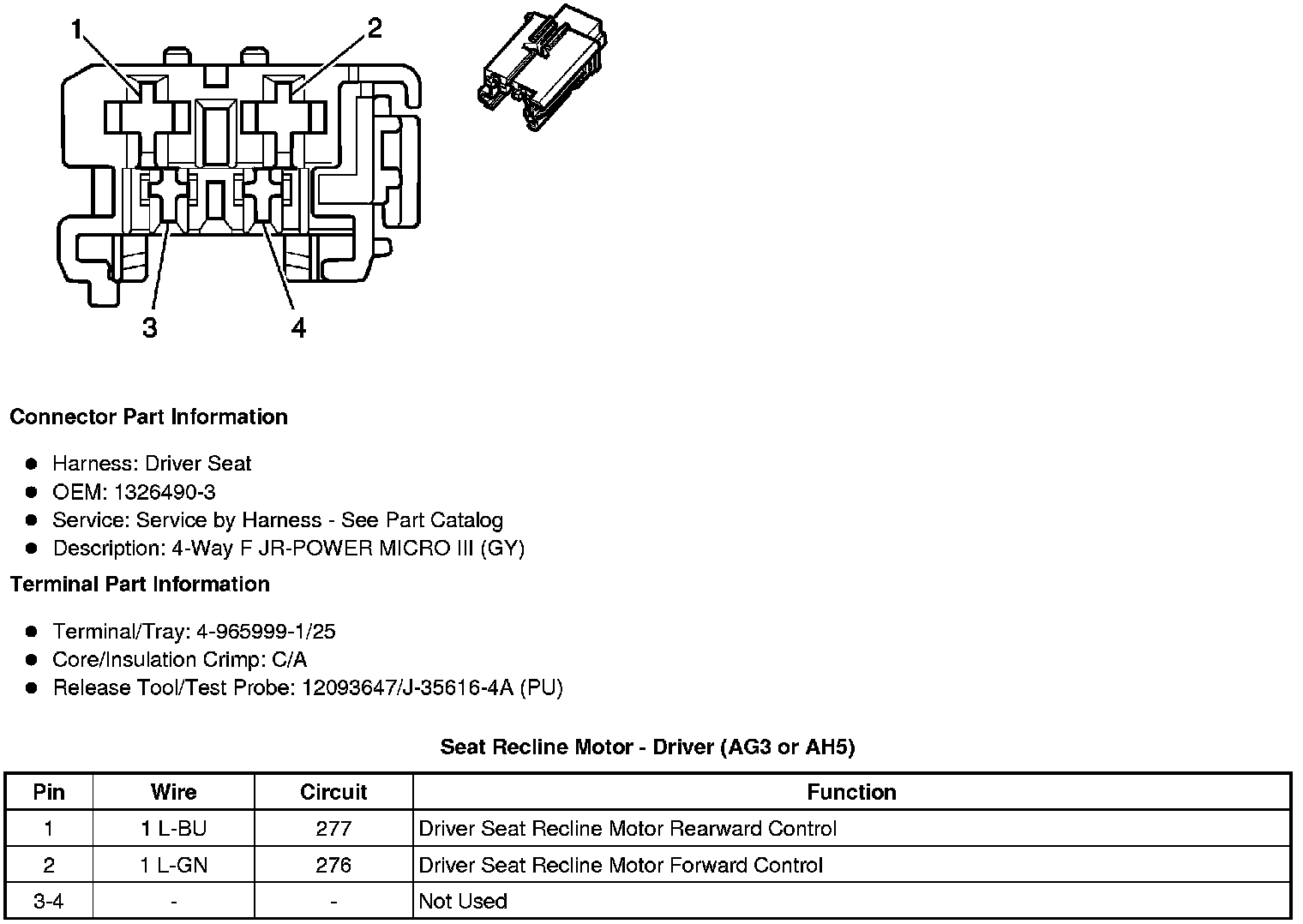 Seat Recline Motor - Driver (AG3 or AH5)