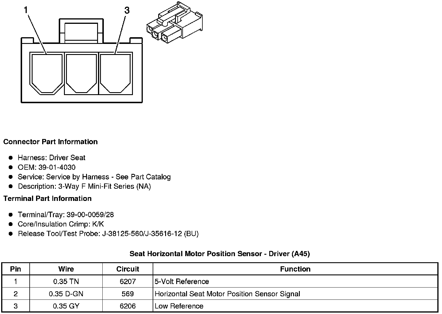 Seat Front Vertical Motor Position Sensor - Driver (A45)