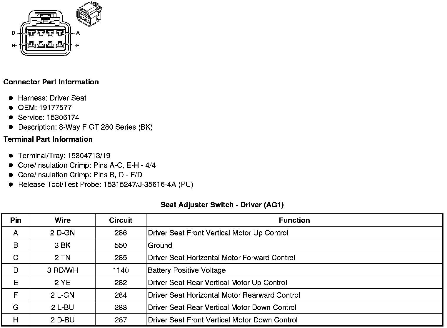 Seat Adjuster Switch - Driver (AG1)