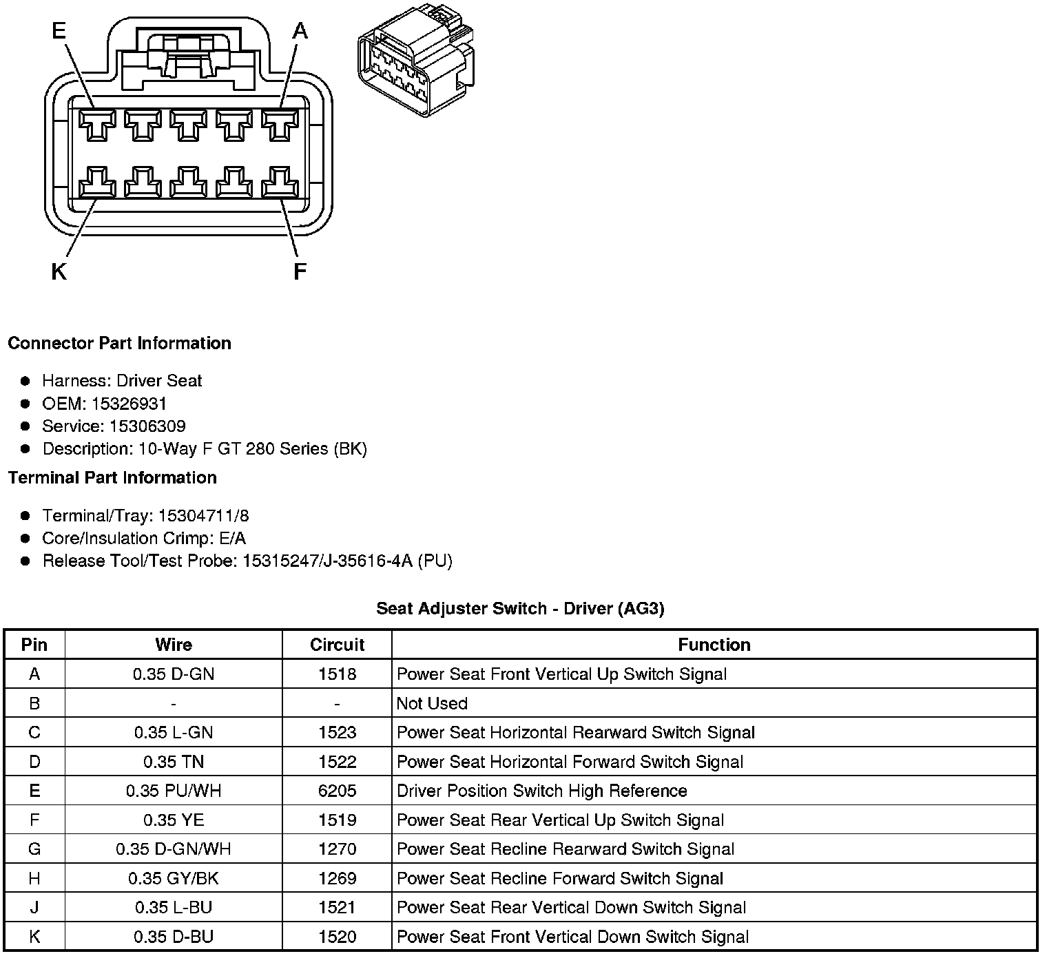 Seat Adjuster Switch - Driver (AG3)