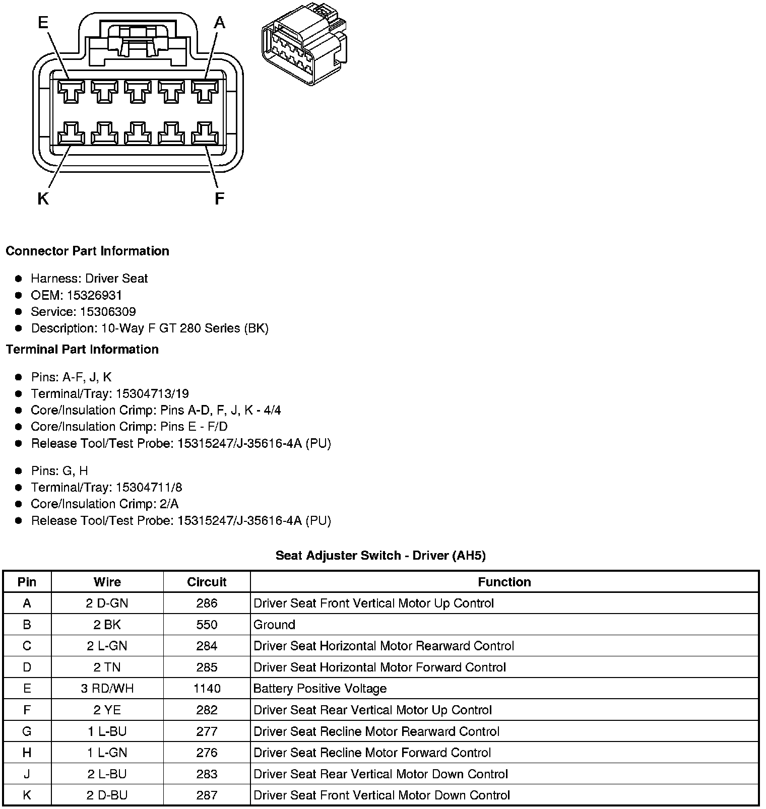 Seat Adjuster Switch - Driver (AH5)