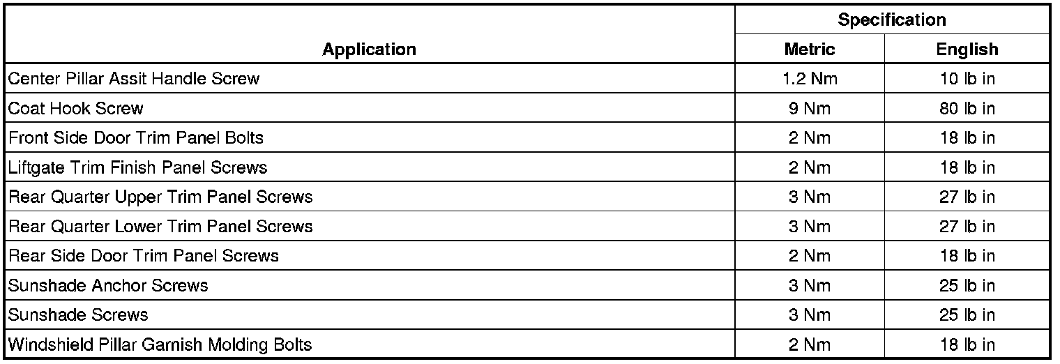 Fastener Tightening Specifications