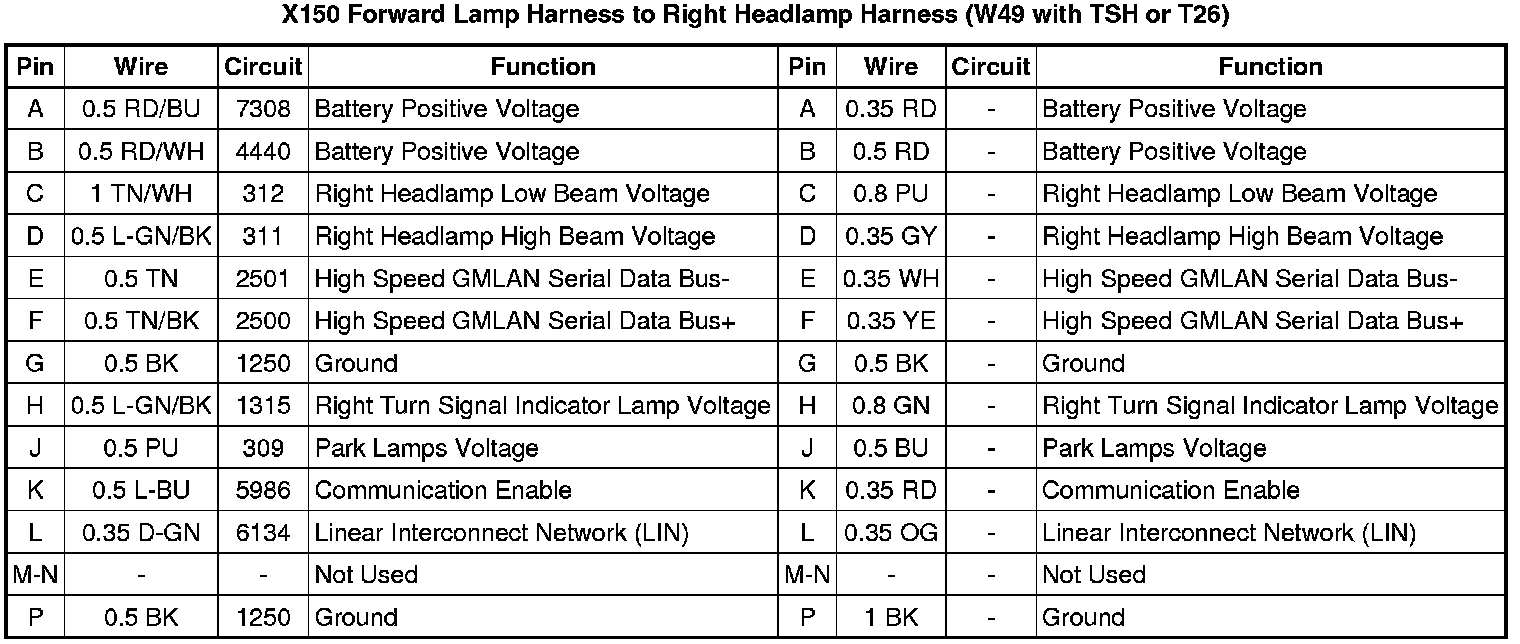 X150 Forward Lamp Harness to Right Headlamp Harness (W49 without TSH or T26)