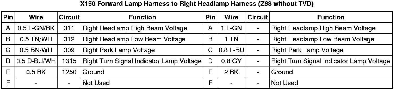 X150 Forward Lamp Harness to Right Headlamp Harness (X88)