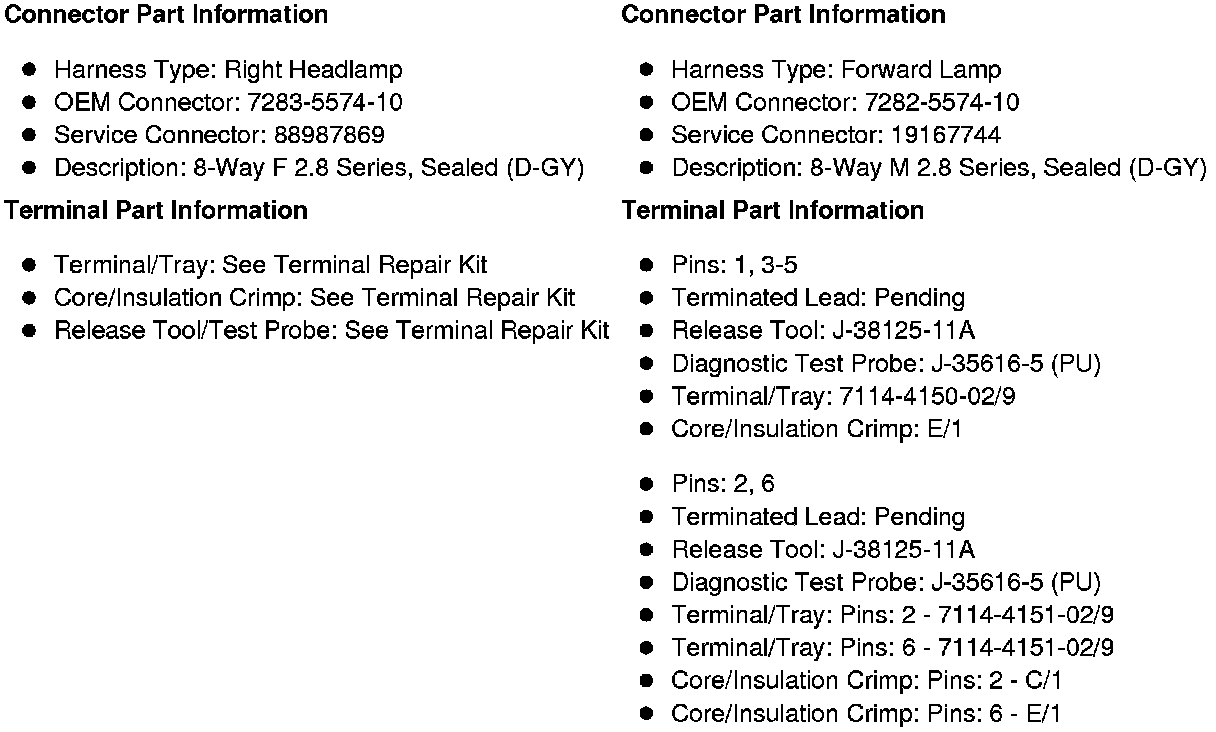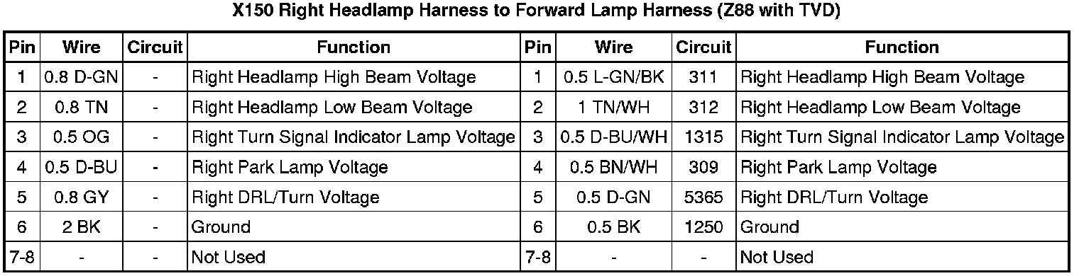 X150 Forward Lamp Harness to Right Headlamp Harness (Z88 without TVD)