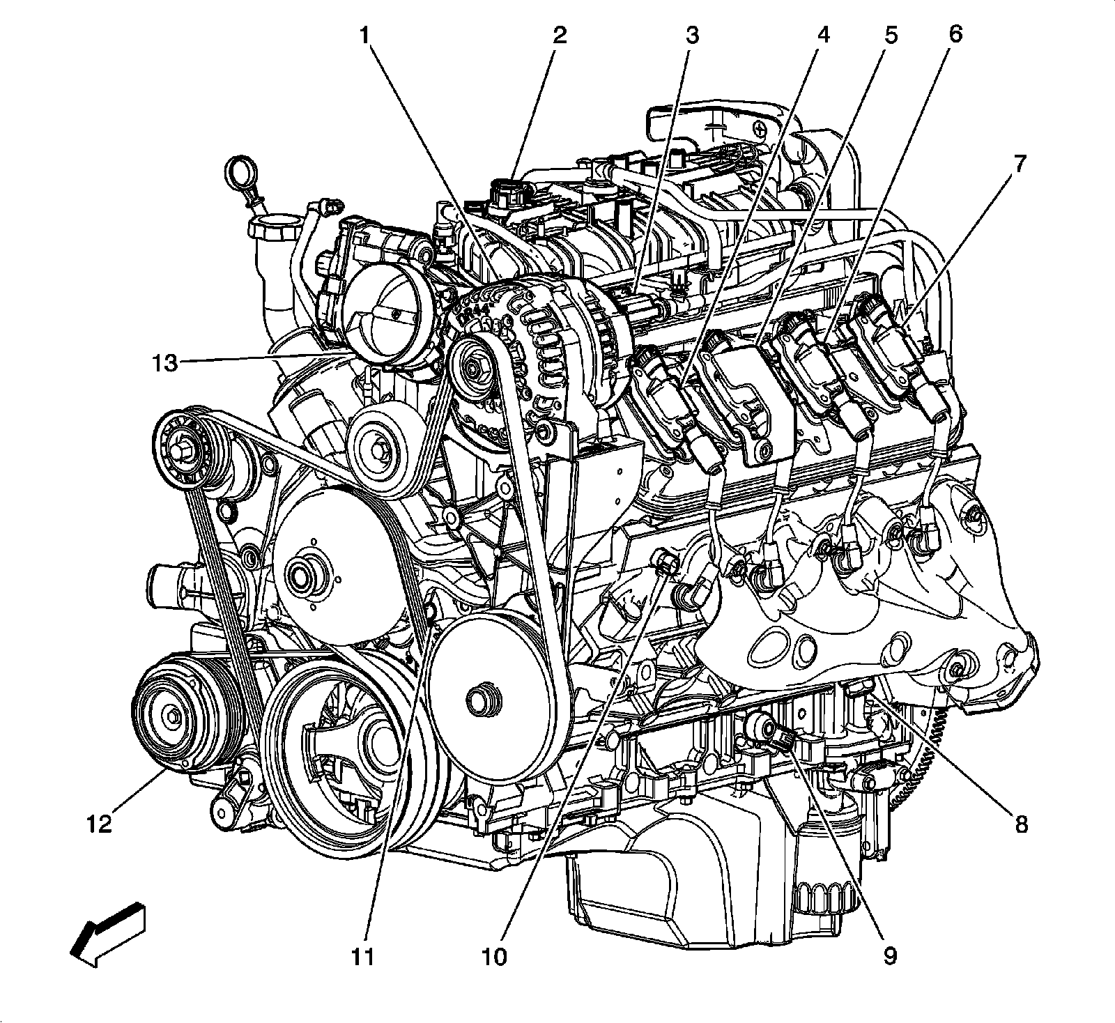 Front and Left Side of Engine Components (except LZ1)
