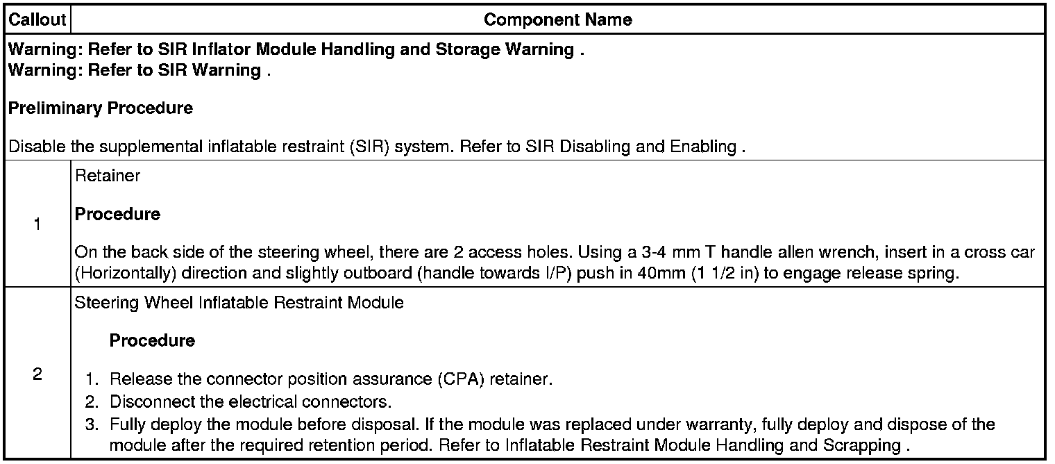 Steering Wheel Inflatable Restraint Module Replacement