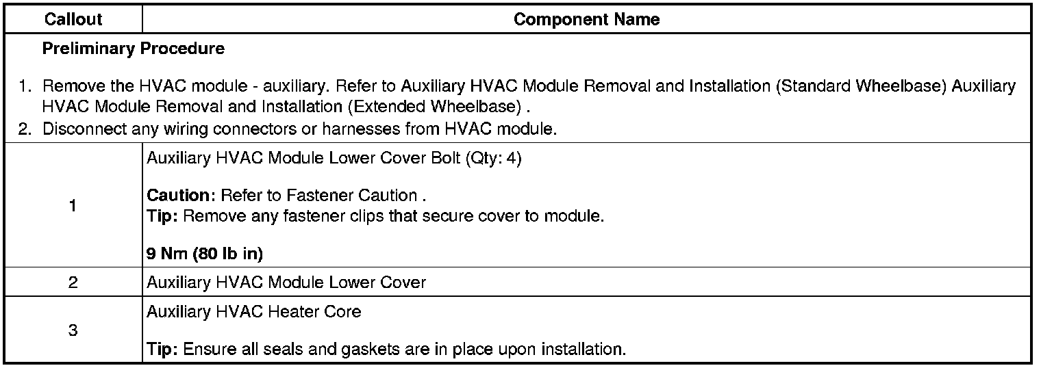 Auxiliary Heater Core Replacement (Extended Wheelbase)