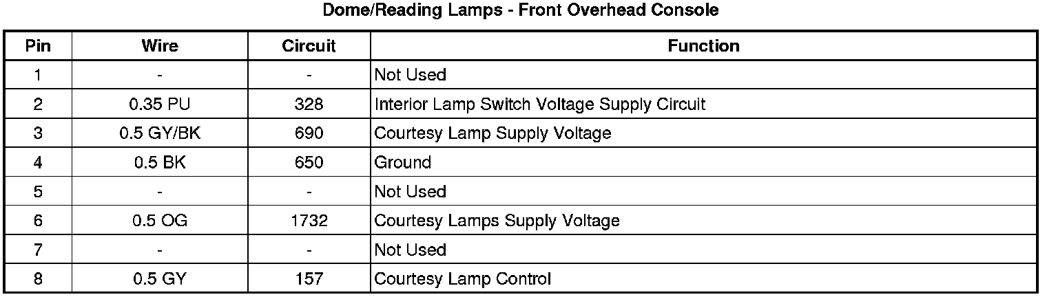 Dome/Reading Lamps - Front Overhead Console