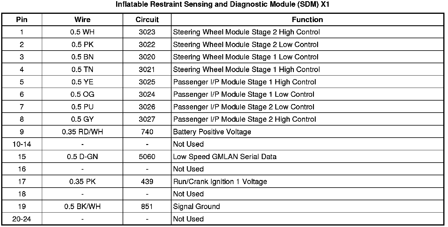 Inflatable Restraint Sensing and Diagnostic Module (SDM) X1