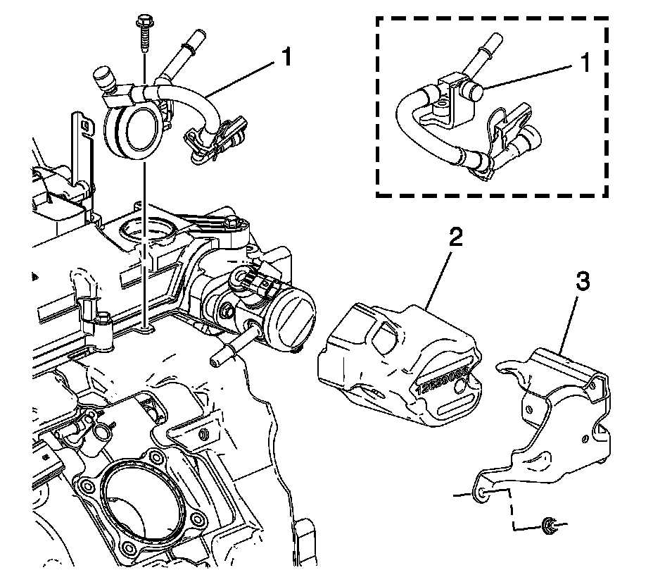 6. Remove the evaporative (EVAP) emission canister valve tube (1) from the intake manifold and reposition.