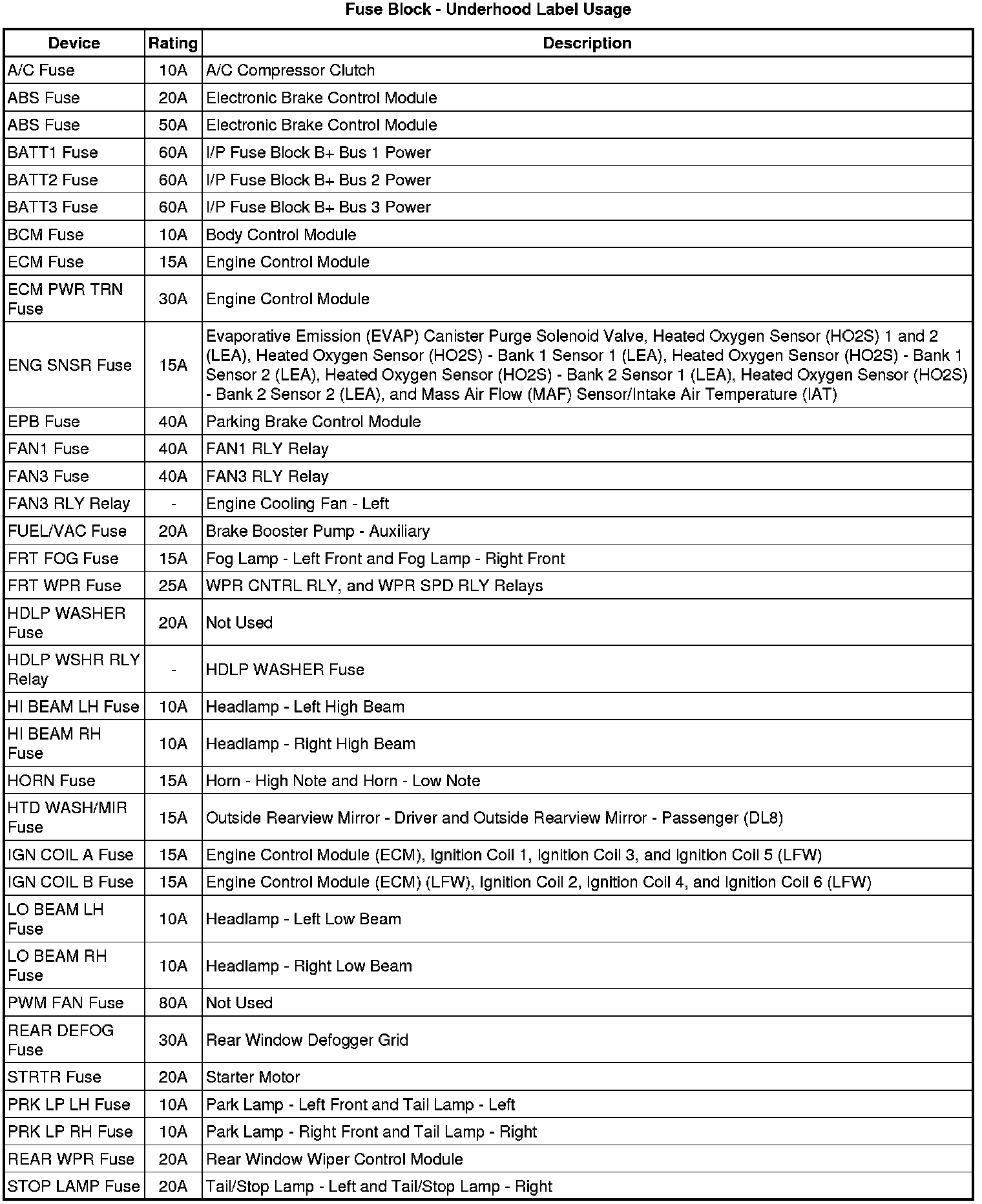 Fuse Block - Underhood Label