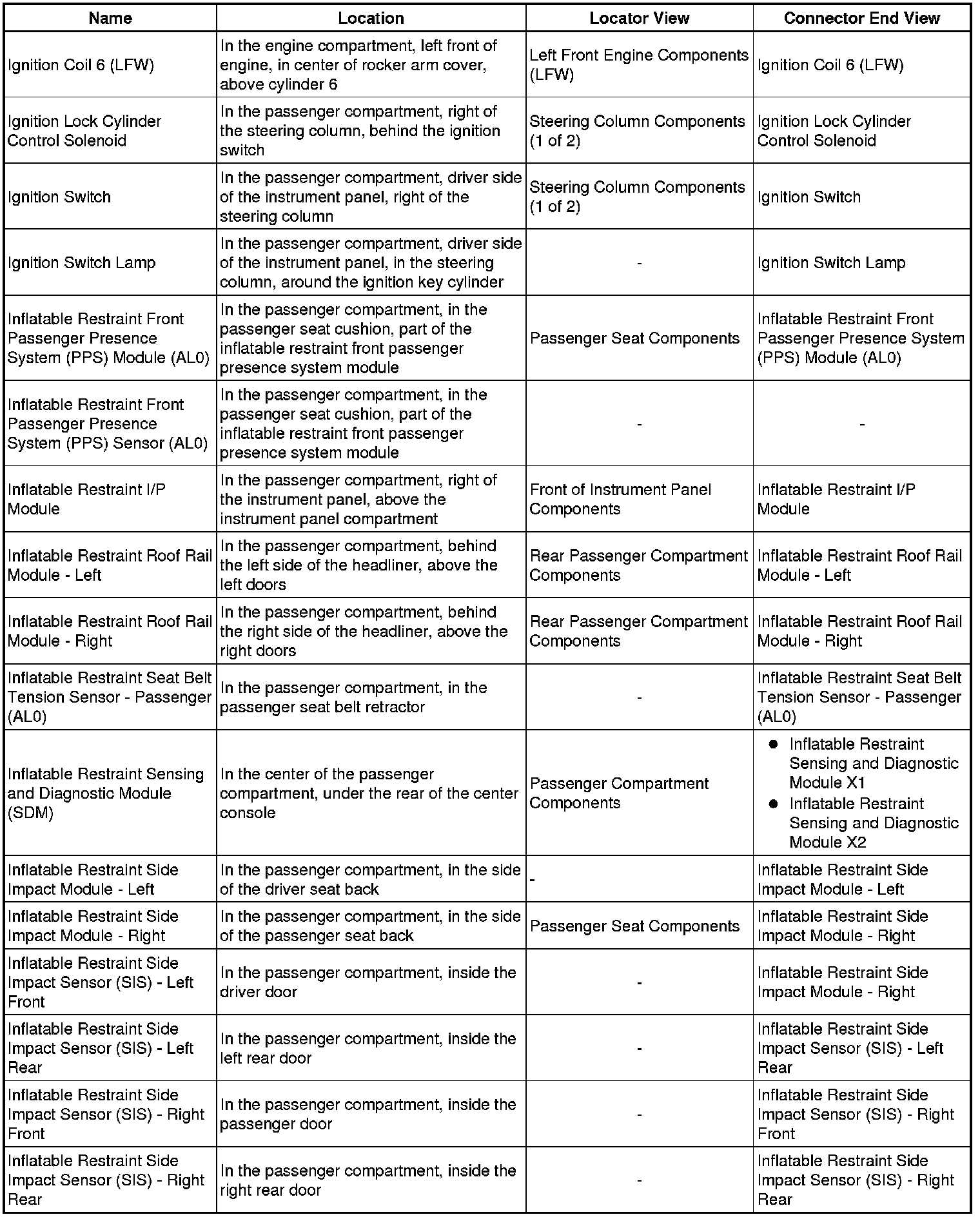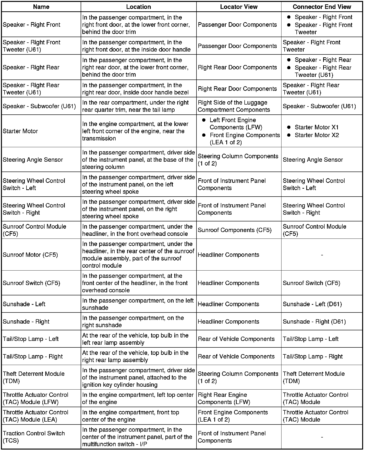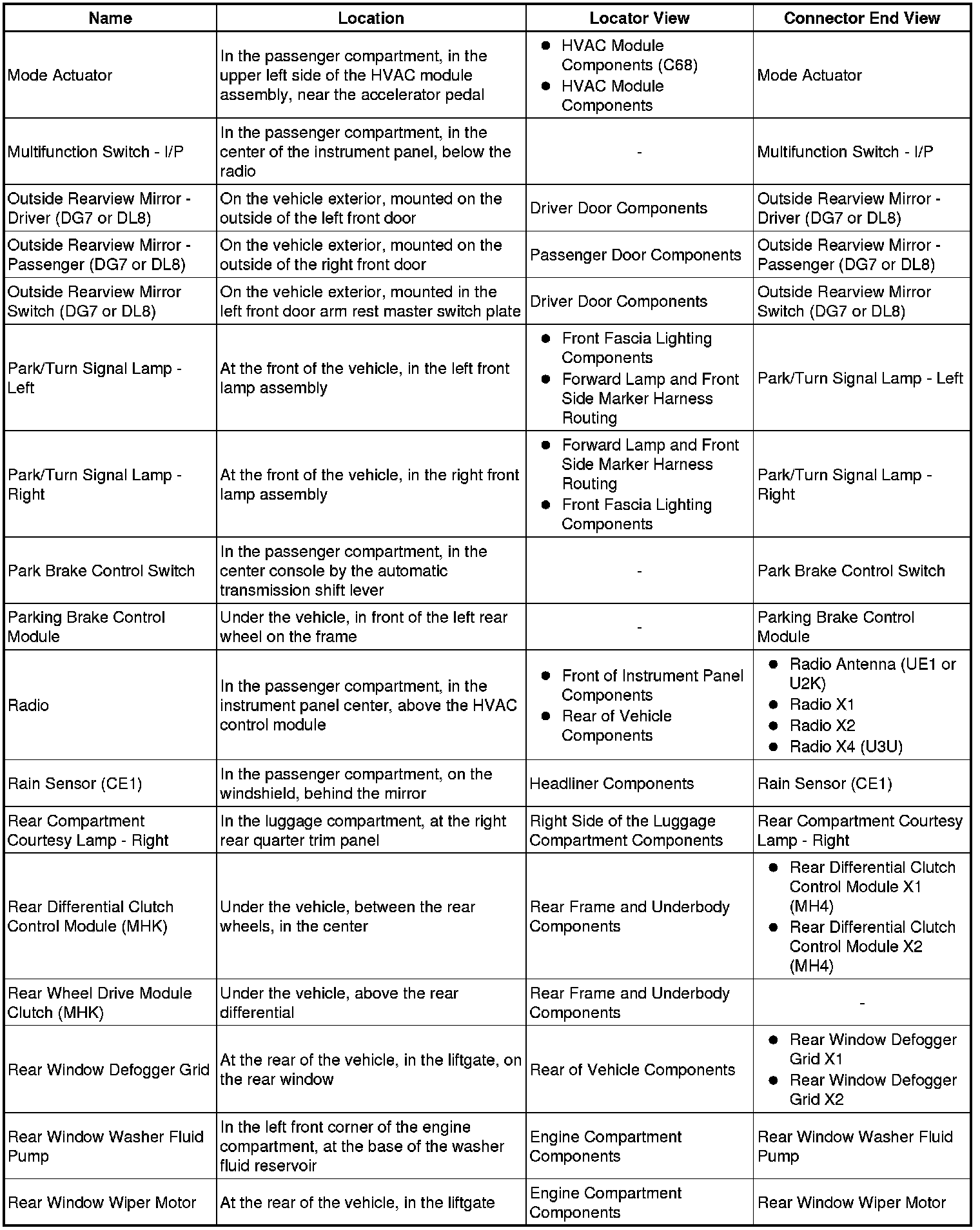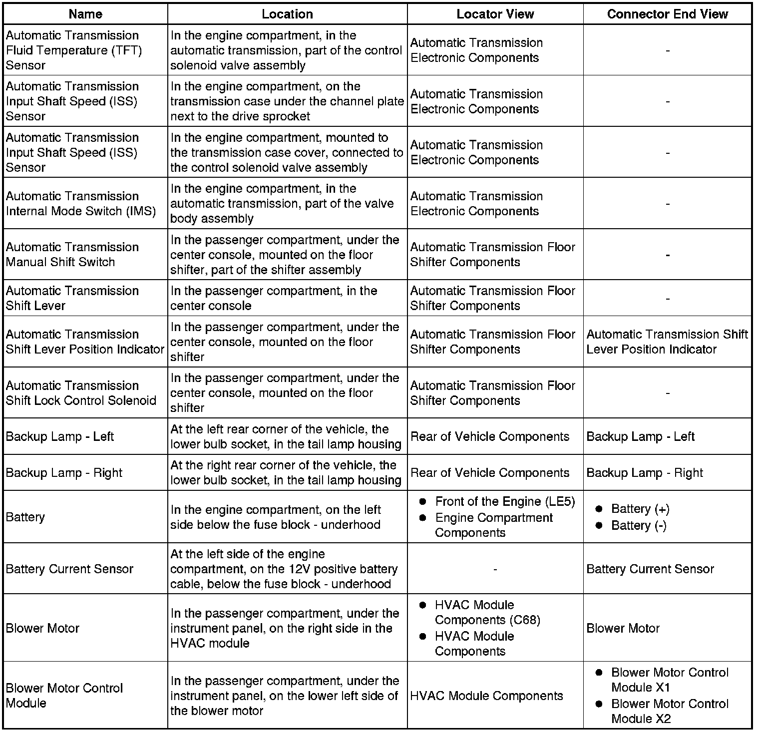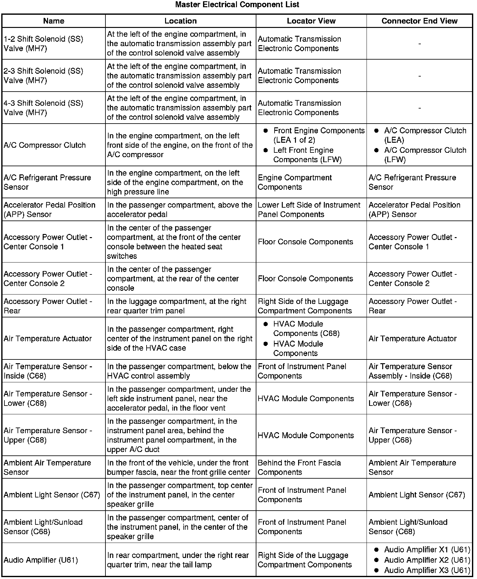 Master Electrical Component List