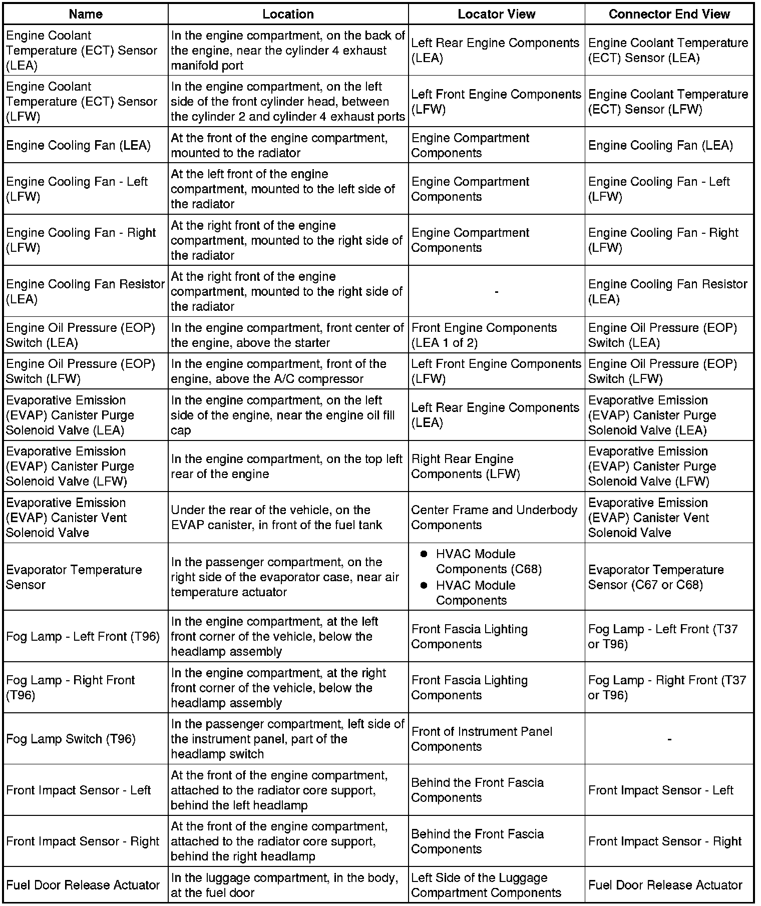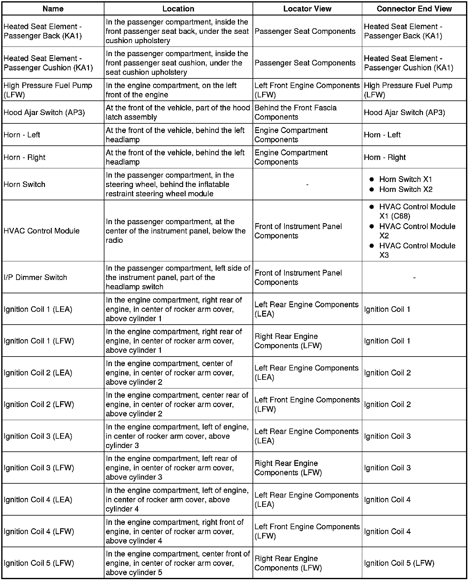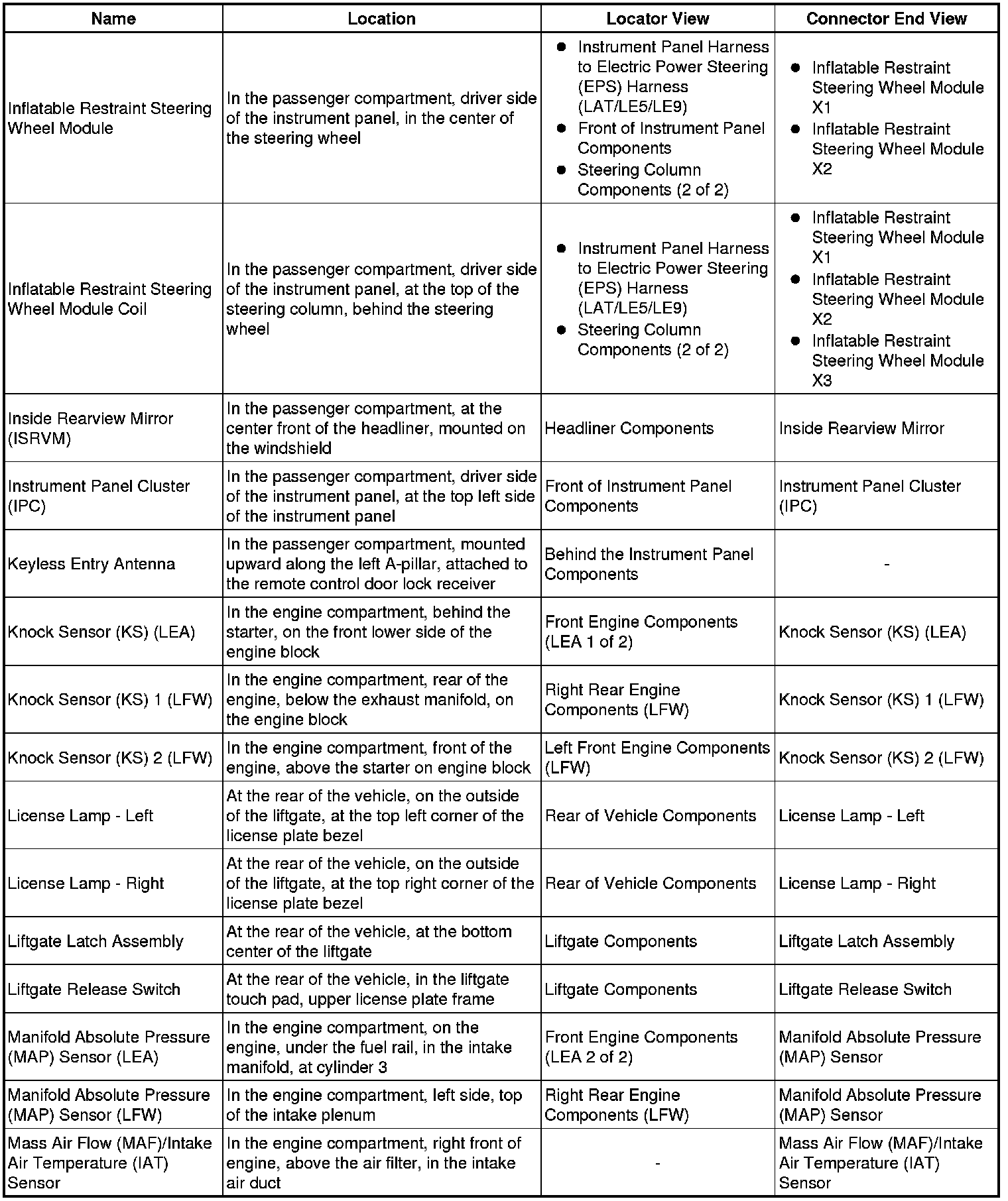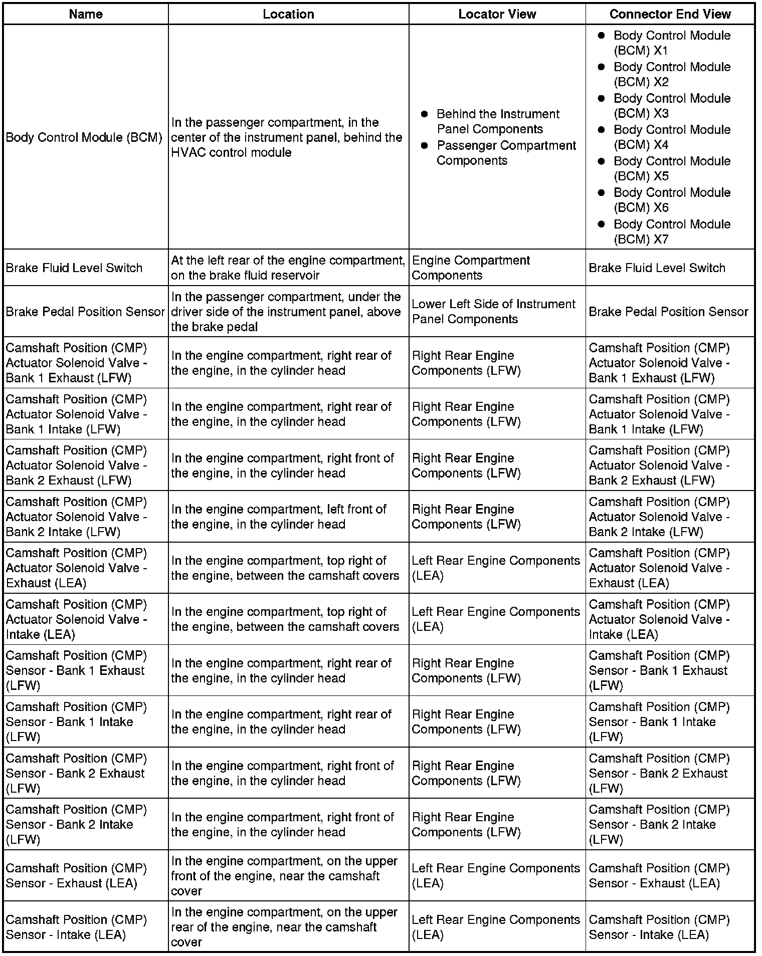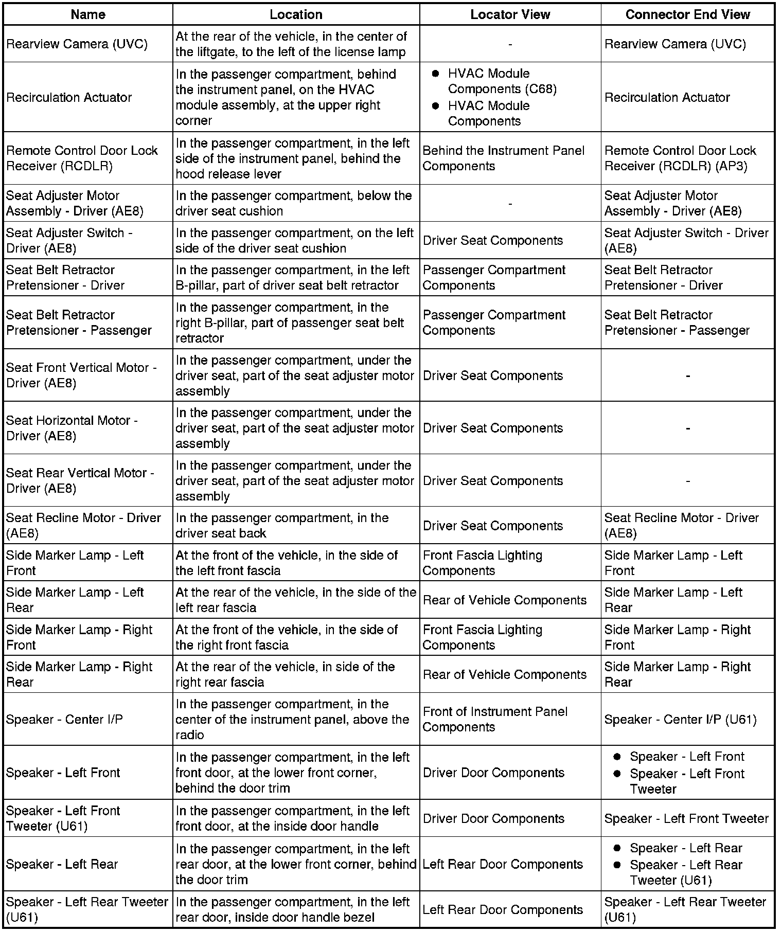 Master Electrical Component List