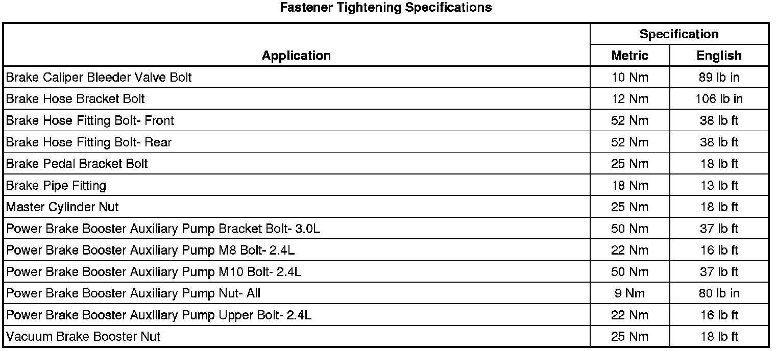 Fastener Tightening Specifications