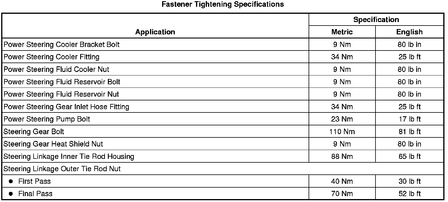 Fastener Tightening Specifications