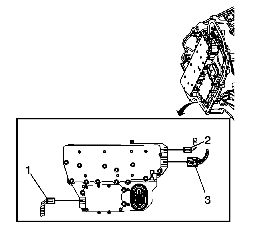 9. Install the transmission control valve body cover. Refer to Control Valve Body Cover Replacement Control Valve Body Cover Replacement.