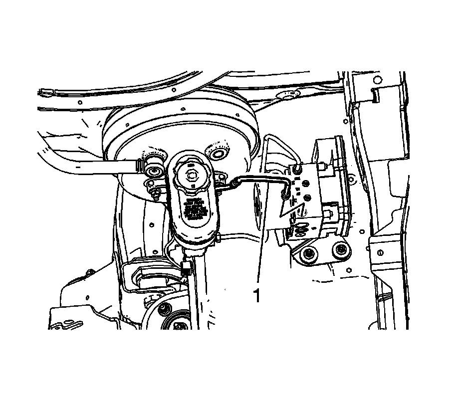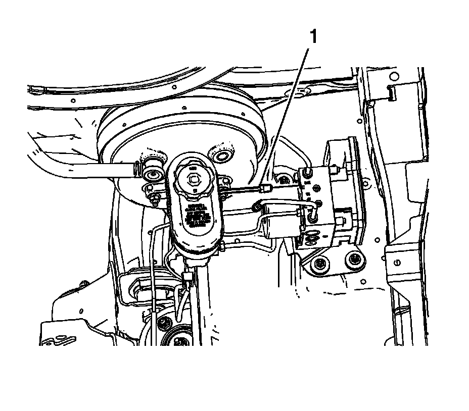 7. Disconnect the LF brake pipe fitting (1) from the EBCM/BPMV assembly.