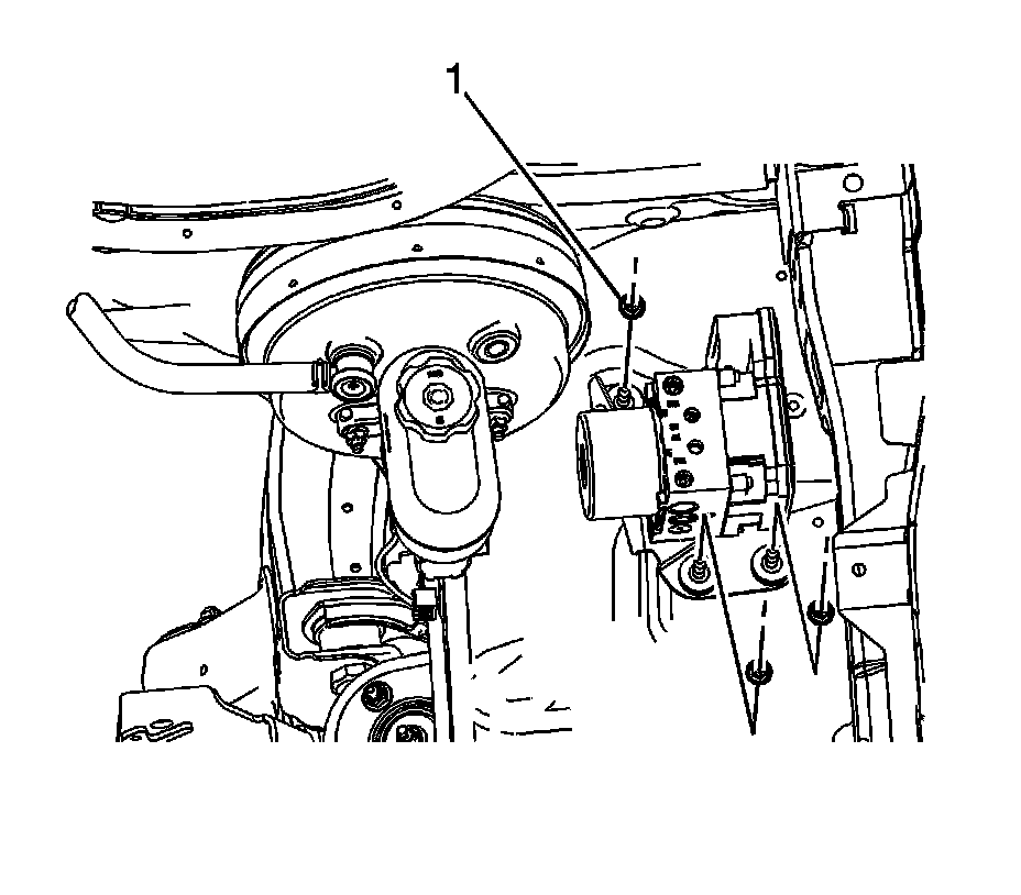 10. Remove the EBCM/BPMV assembly bracket nuts (1).