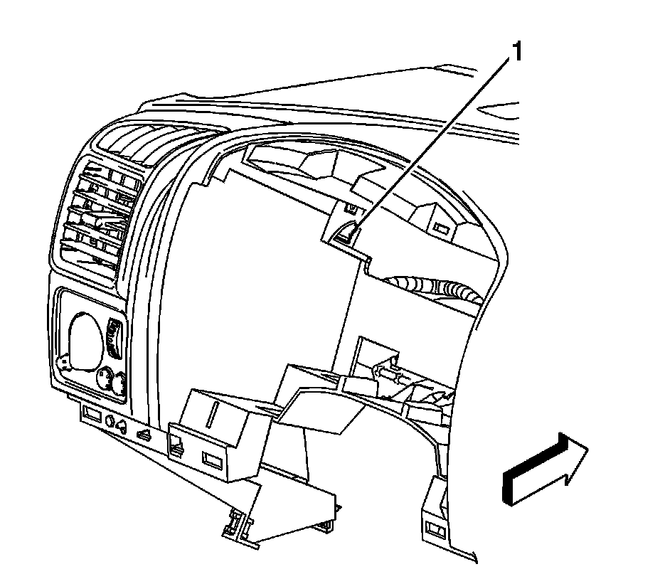 12. Pull the I/P compartment folding panel (1) down and rearward to reveal the screw installation area.