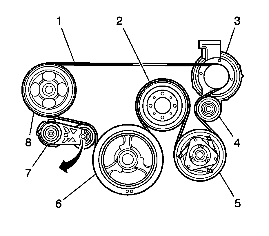 3. Allow the drive belt tensioner (7) to return to the relaxed position.