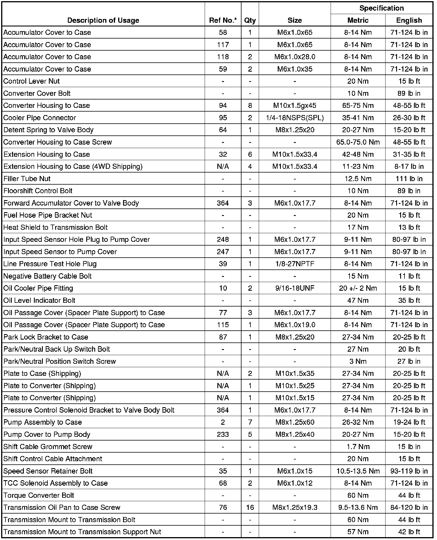 Fastener Tightening Specifications