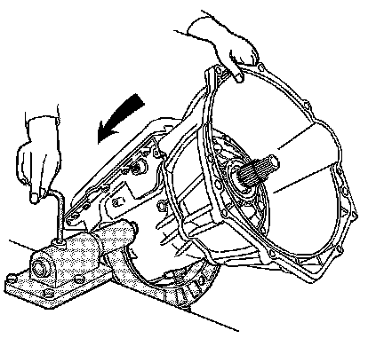 Rotate the transmission so that the converter housing is up. Allow the transmission fluid to drain from the case extension.