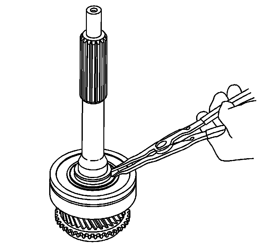 3. Select the maximum thickness retaining ring for the input shaft bearing, that will fit in the groove. Refer to Input Shaft Bearing Retaining Ring Specifications Input Shaft Bearing Retaining Ring Specifications.