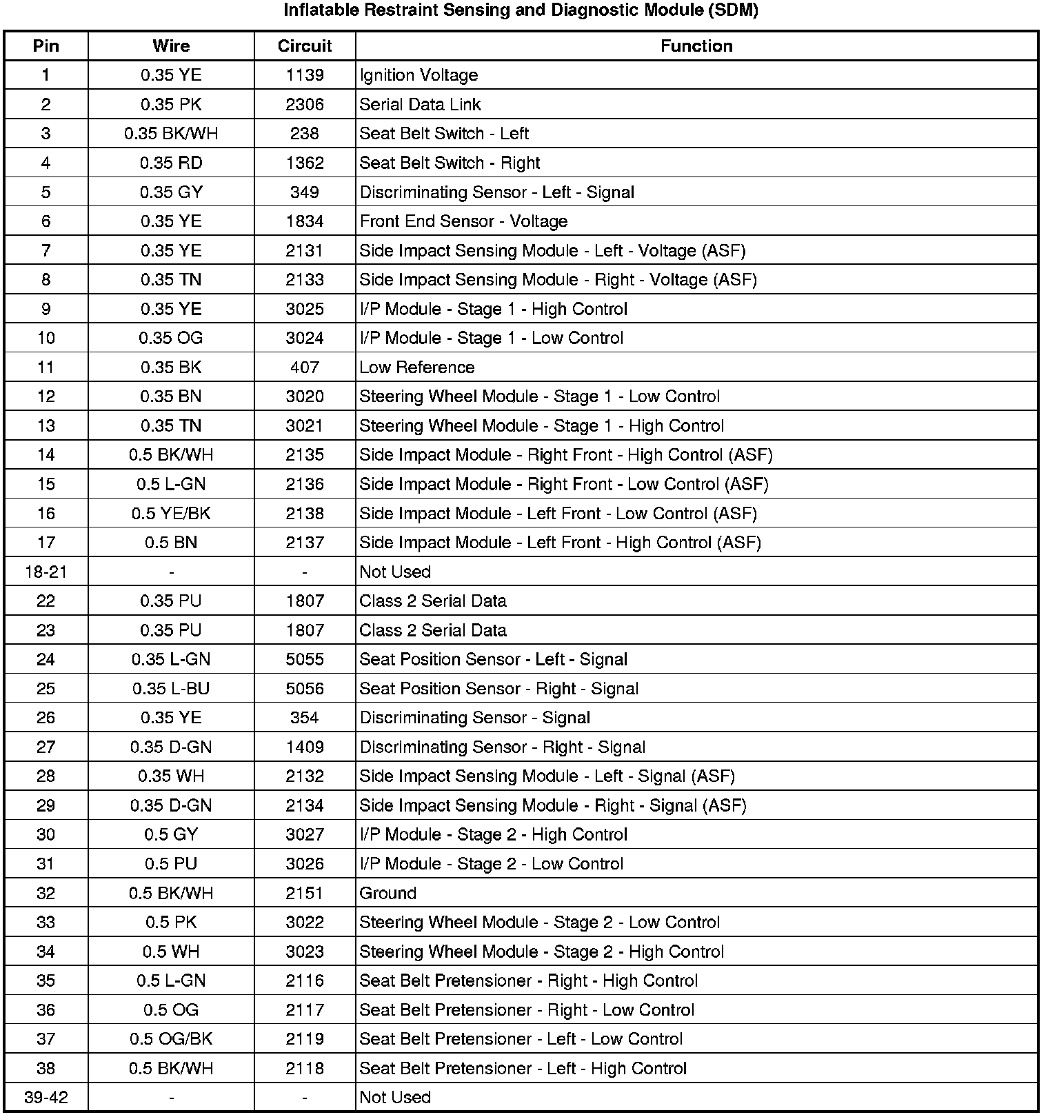 Inflatable Restraint Sensing and Diagnostic Module (SDM)