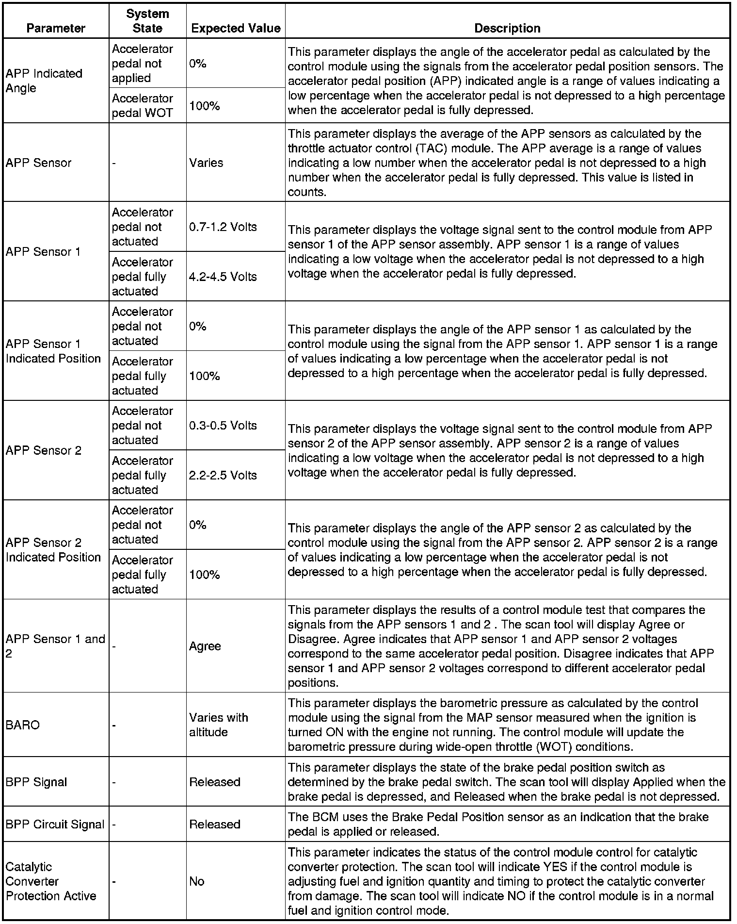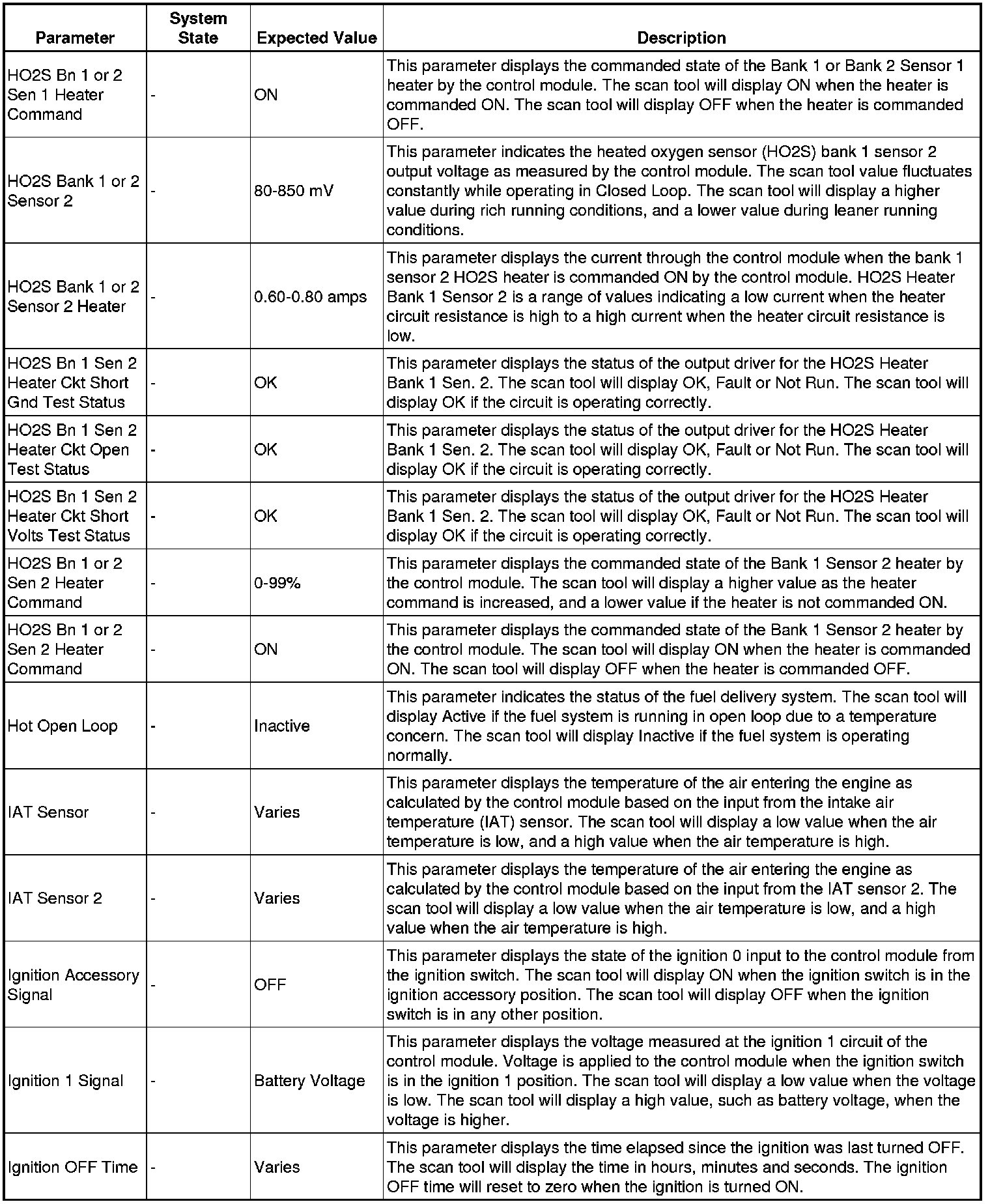 The Engine Control Module Scan Tool Data List contains all engine-related parameters that are available on the scan tool. The list is arranged in alphabetical order. A given parameter may appear in any one of the data lists, and in some cases may appear more than once, or in more than one data list in order to group certain related parameters together.