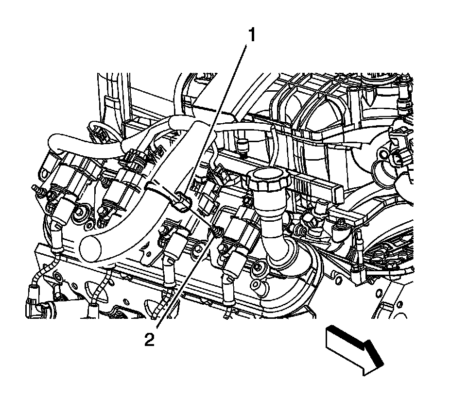 4. Remove the positive crankcase ventilation (PCV) foul air hose (1).