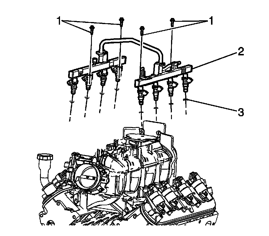 1. Remove the fuel injectors from the fuel rail. Refer to Fuel Injector Replacement Removal and Replacement.