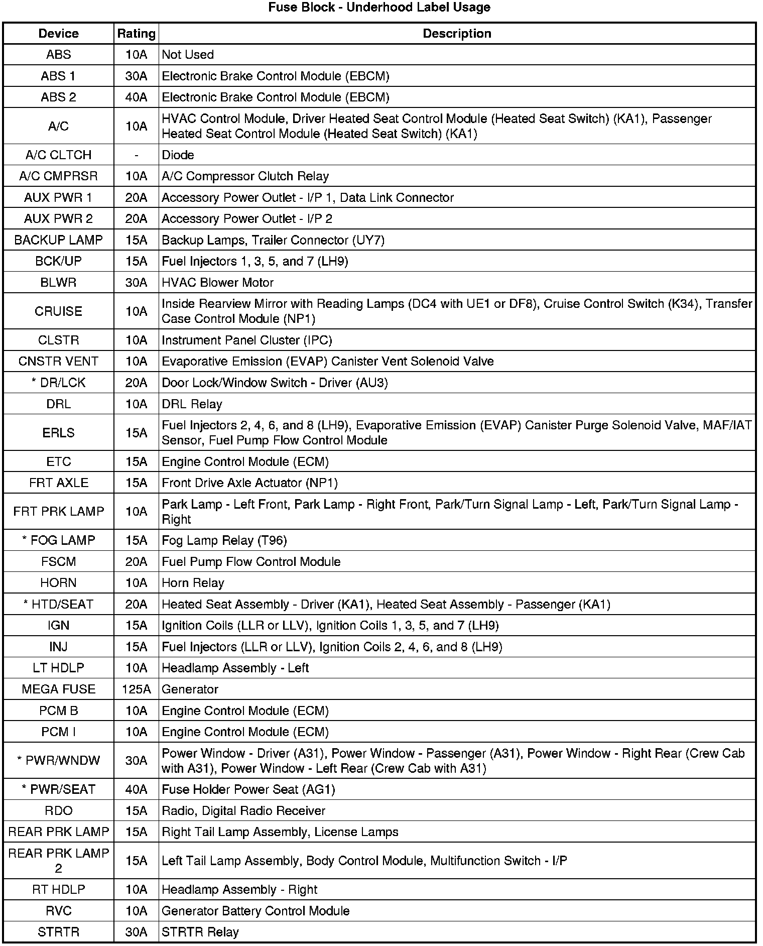 Fuse Block - Underhood Label
