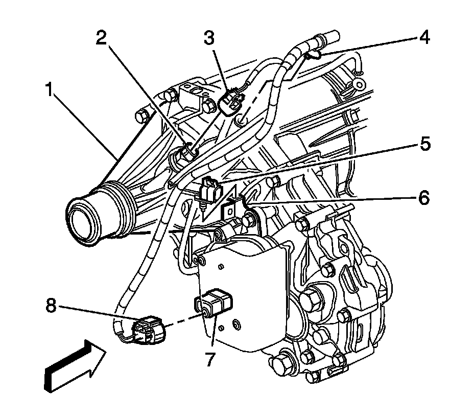 3. Remove the transfer case speed sensor (2) and O-ring seal (1) from the transfer case.