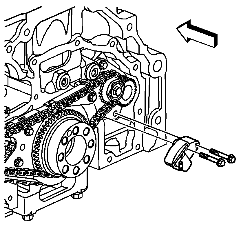 5. Remove the pin holding the tensioner to tighten any slack in the balance shaft drive chain.