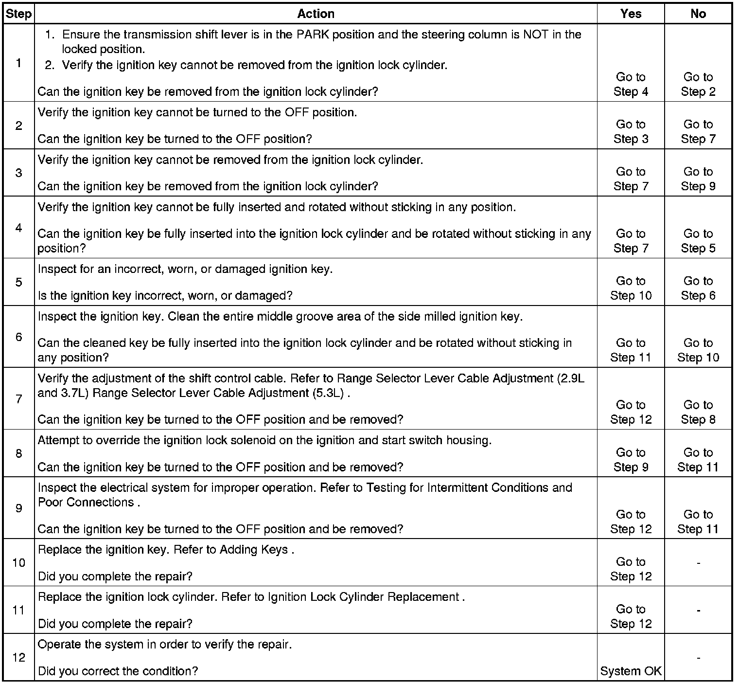 Cannot Be Inserted, Rotated, or Removed from the Ignition Lock Cylinder