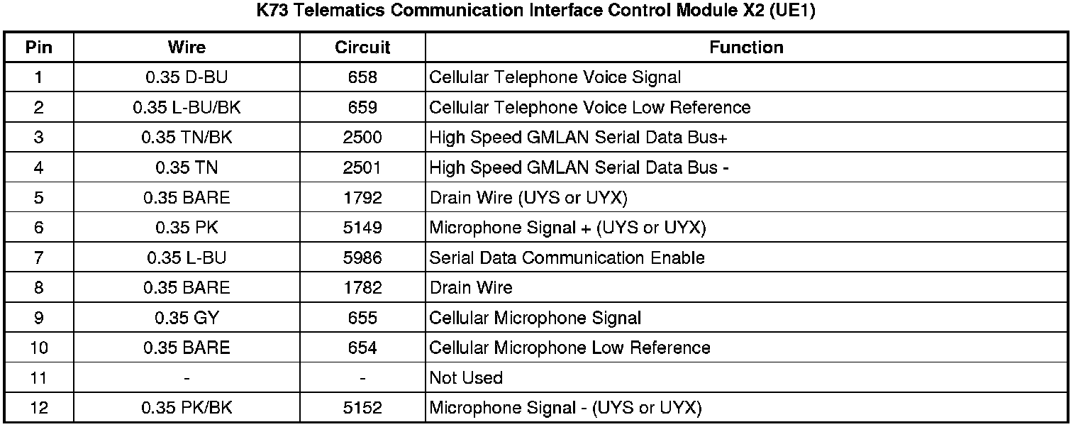 K73 Telematics Communication Interface Control Module X2 (UE1)