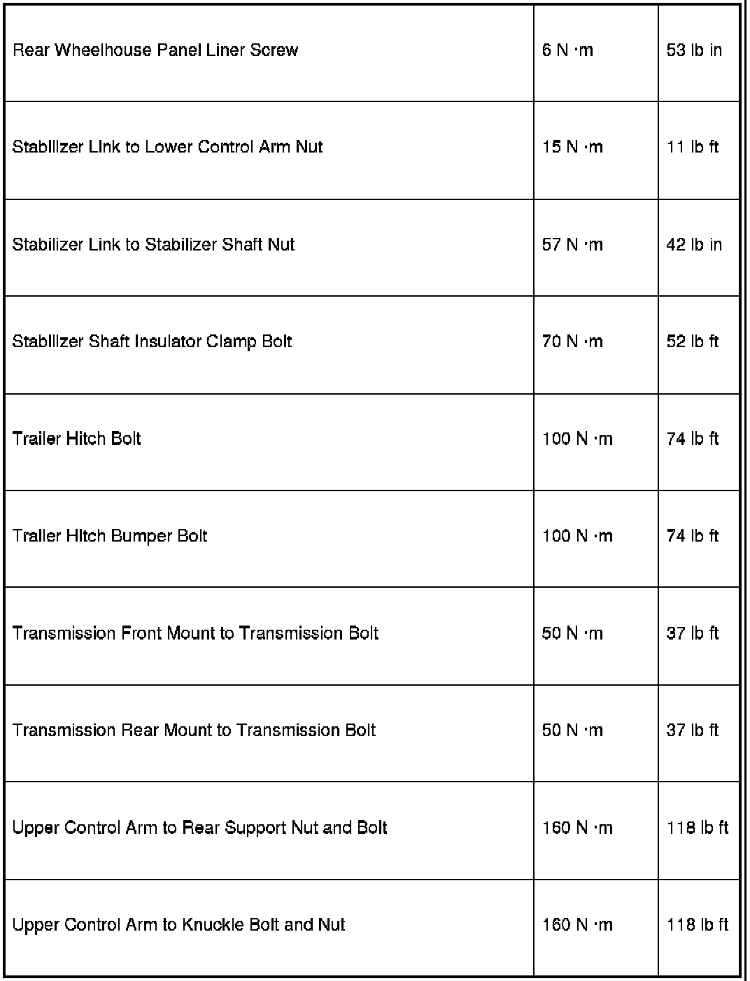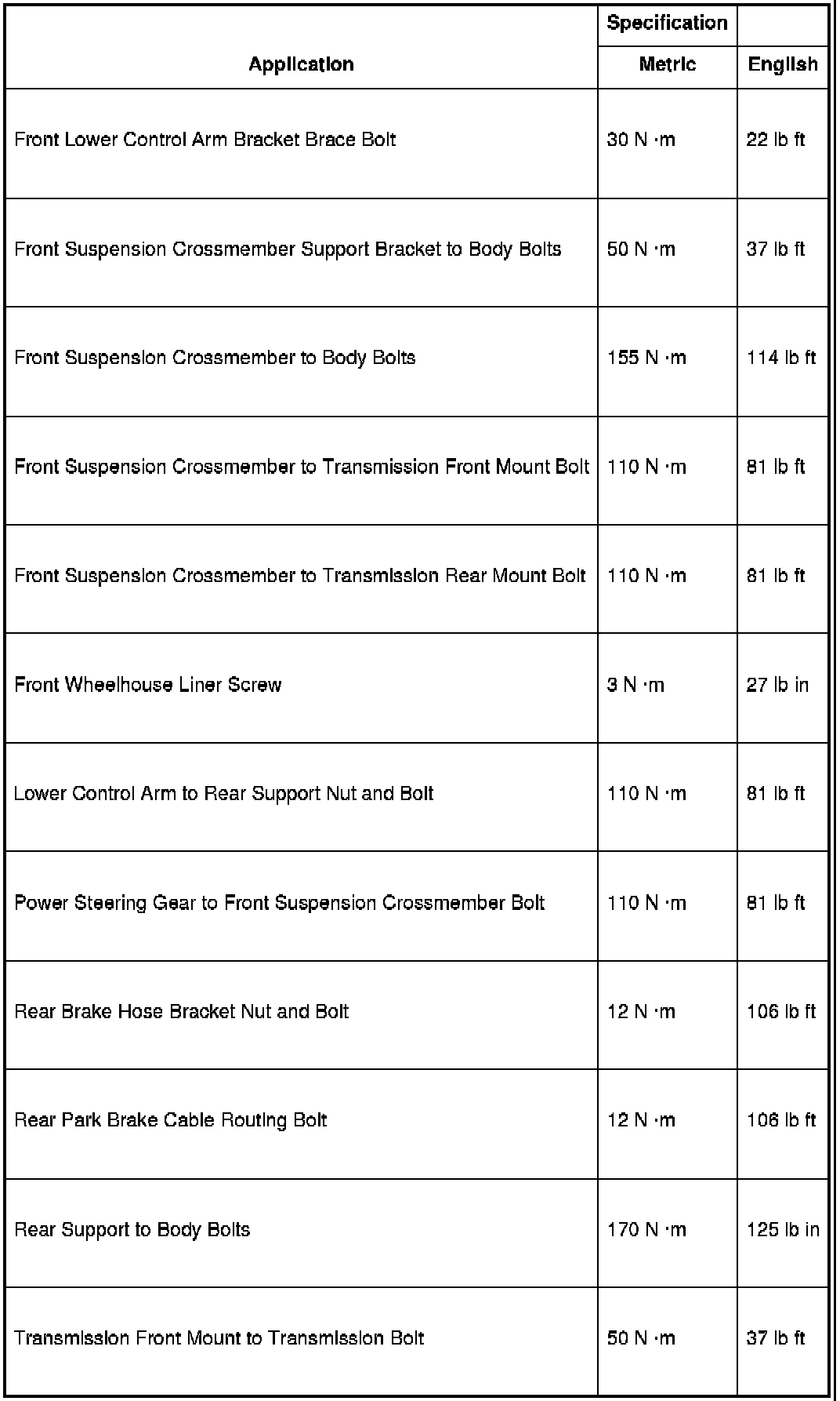 Fastener Tightening Specifications