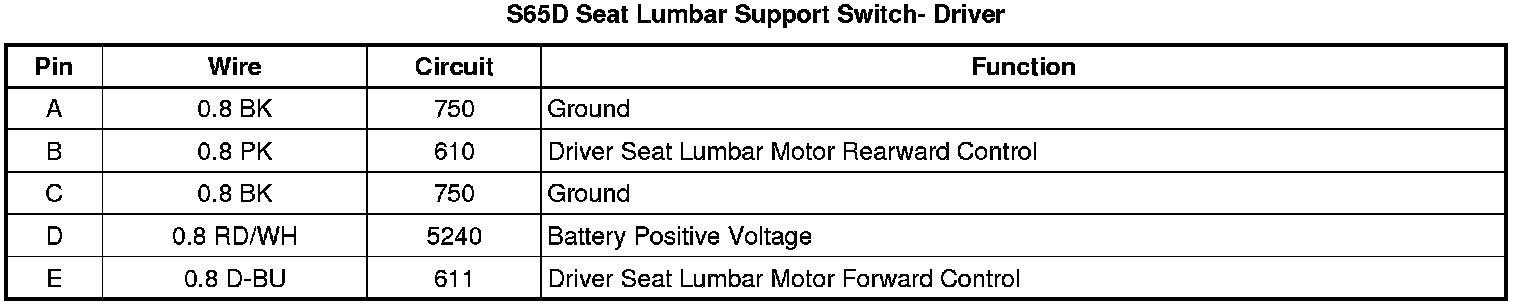 S65D Seat Lumbar Support Switch- Driver
