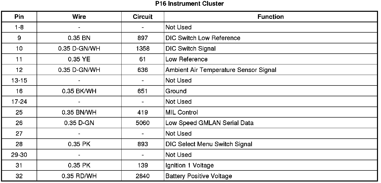 P16 Instrument Cluster