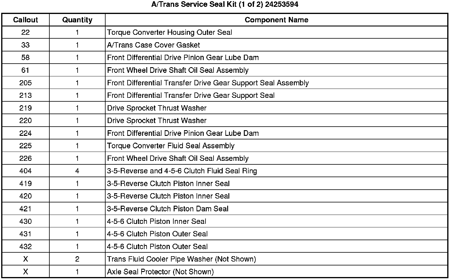 A/Trans Service Seal Kit (1 of 2) 24253594